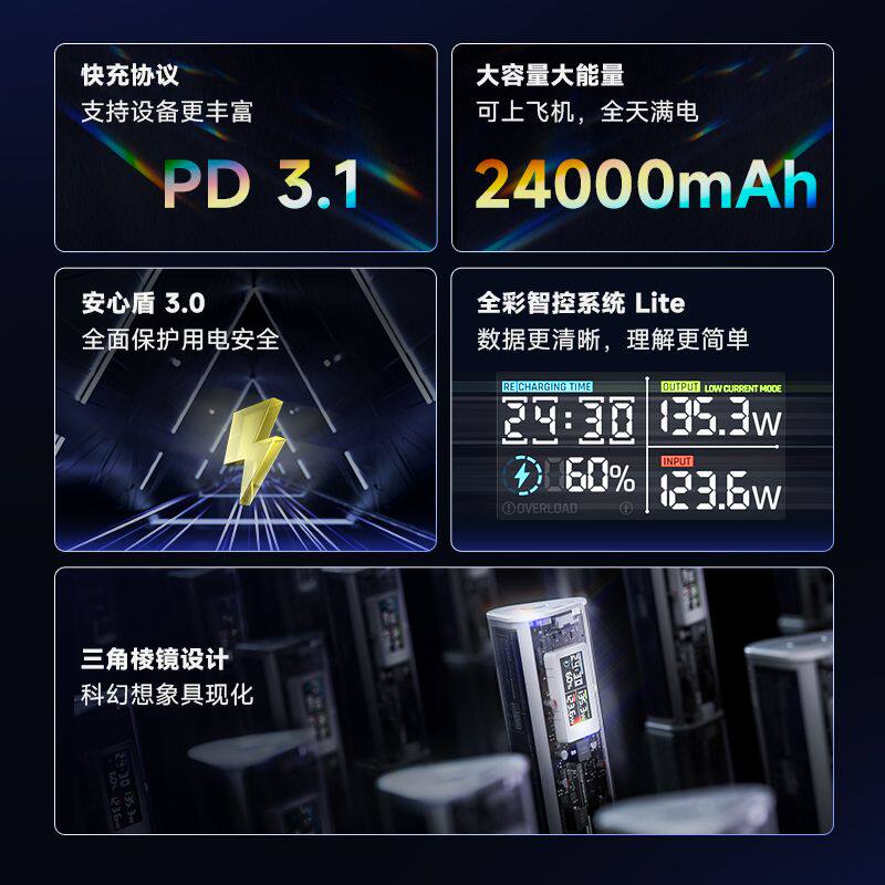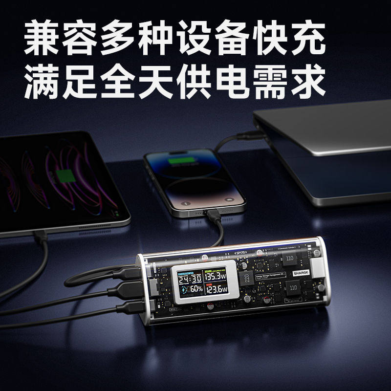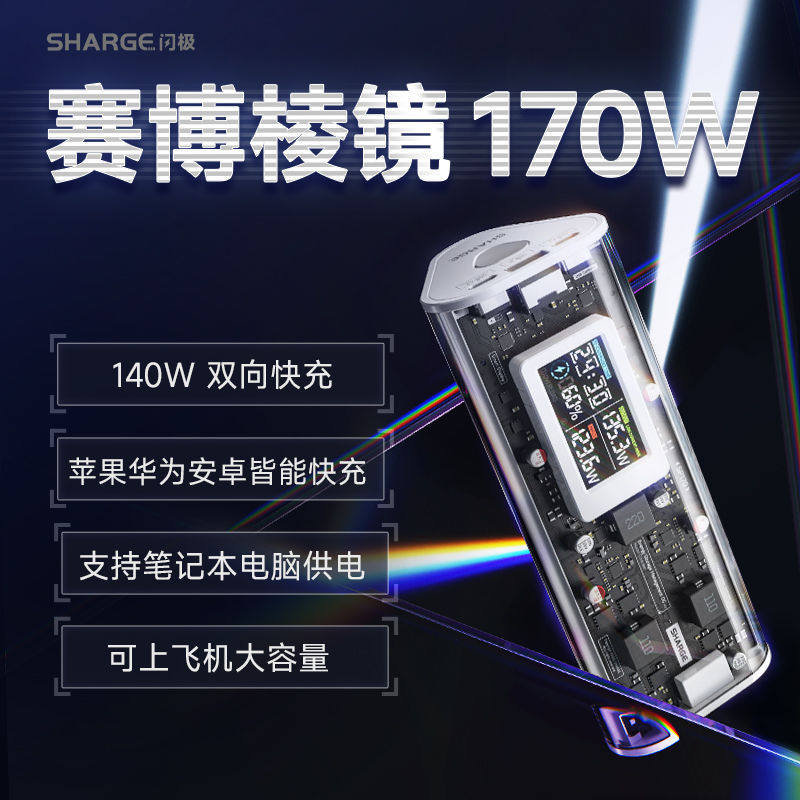 Flash Cyber Prism 170W Мобильная зарядка Полностью прозрачный Super Power Bank PD3.1 Быстрая зарядка Подходит для Macbook