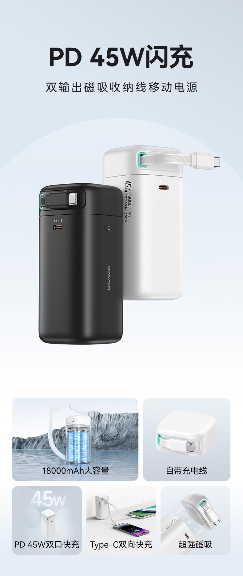 Youshengshi Power Bank быстро заряжается 18000 мА большую мощность Двусторонняя зарядка 45 Вт.