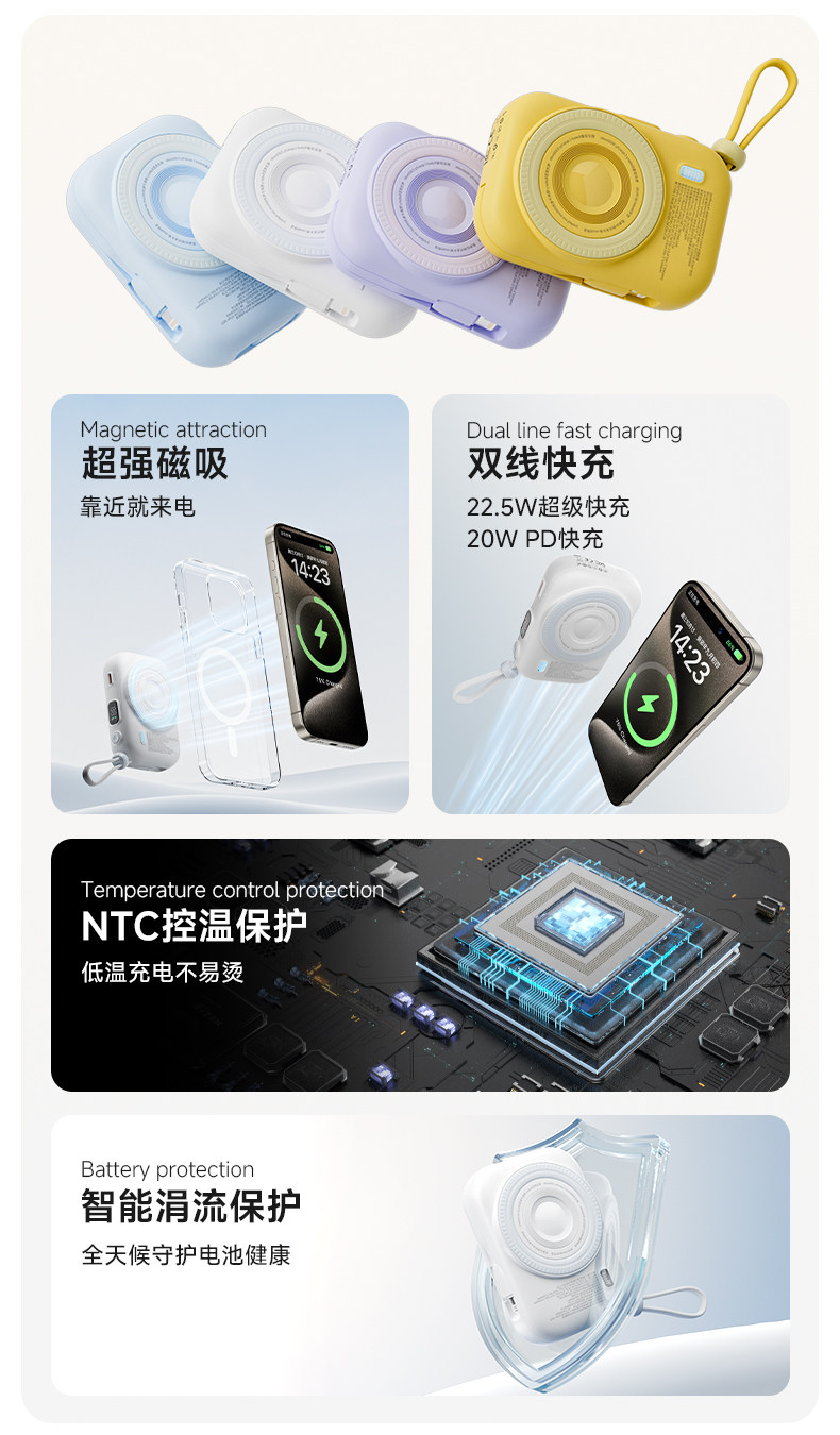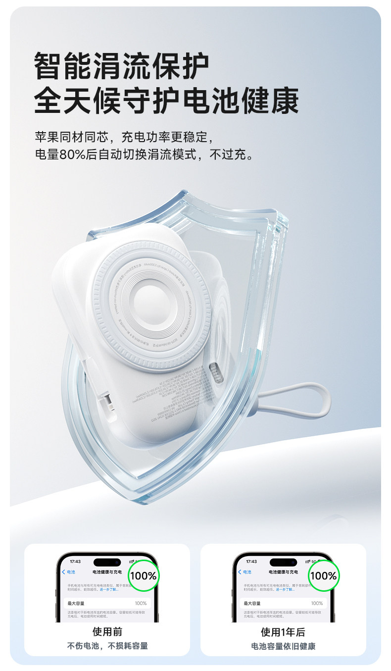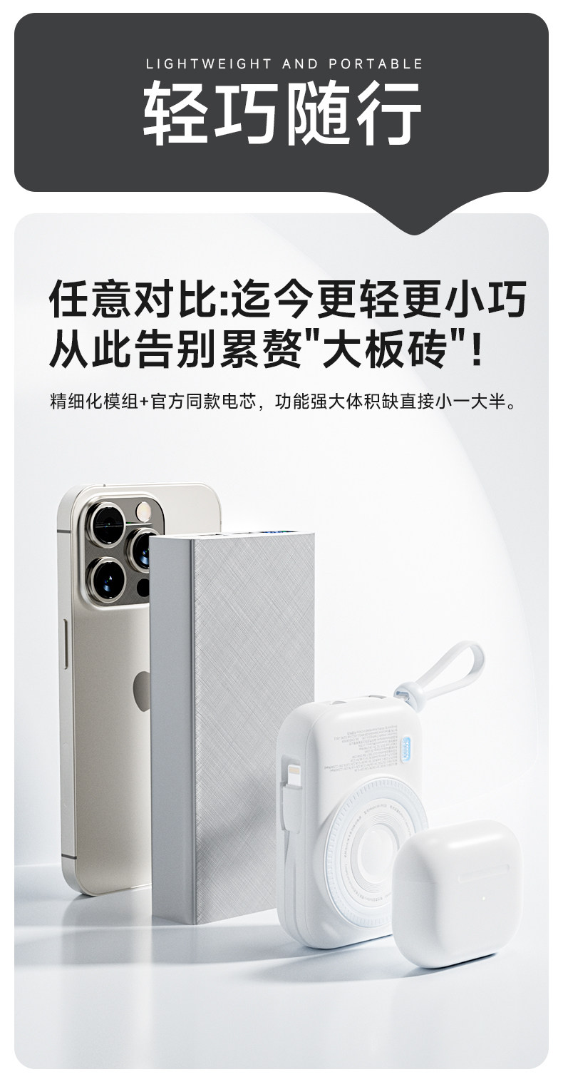 | Цвет: | [--国家3C认证 可上飞机高铁--], [绝绝紫【自带双线】22.5w快充★ magsafe强磁吸★适用苹果8-17/华为手机], [发财黄【自带双线】22.5w快充★ magsafe强磁吸★适用苹果8-17/华为手机], [奶油白【自带双线】22.5w快充★ magsafe强磁吸★适用苹果8-17/华为手机], [远峰蓝【自带双线】22.5w快充★ magsafe强磁吸★适用苹果8-17/华为手机], [【非卖品】企业公司logo定制团购 数量价格开票咨询客服] |