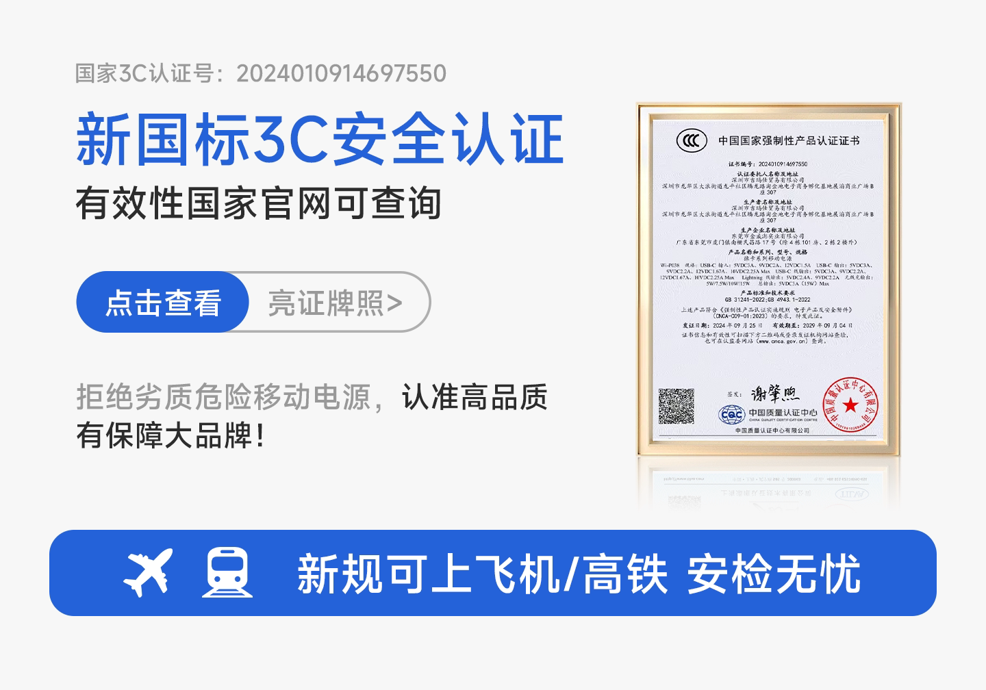 - [--国家3C认证 可上飞机高铁--]