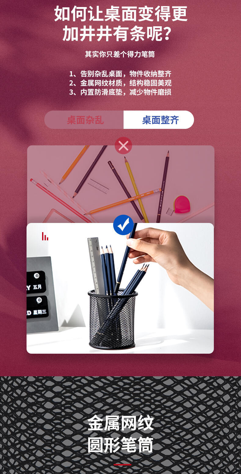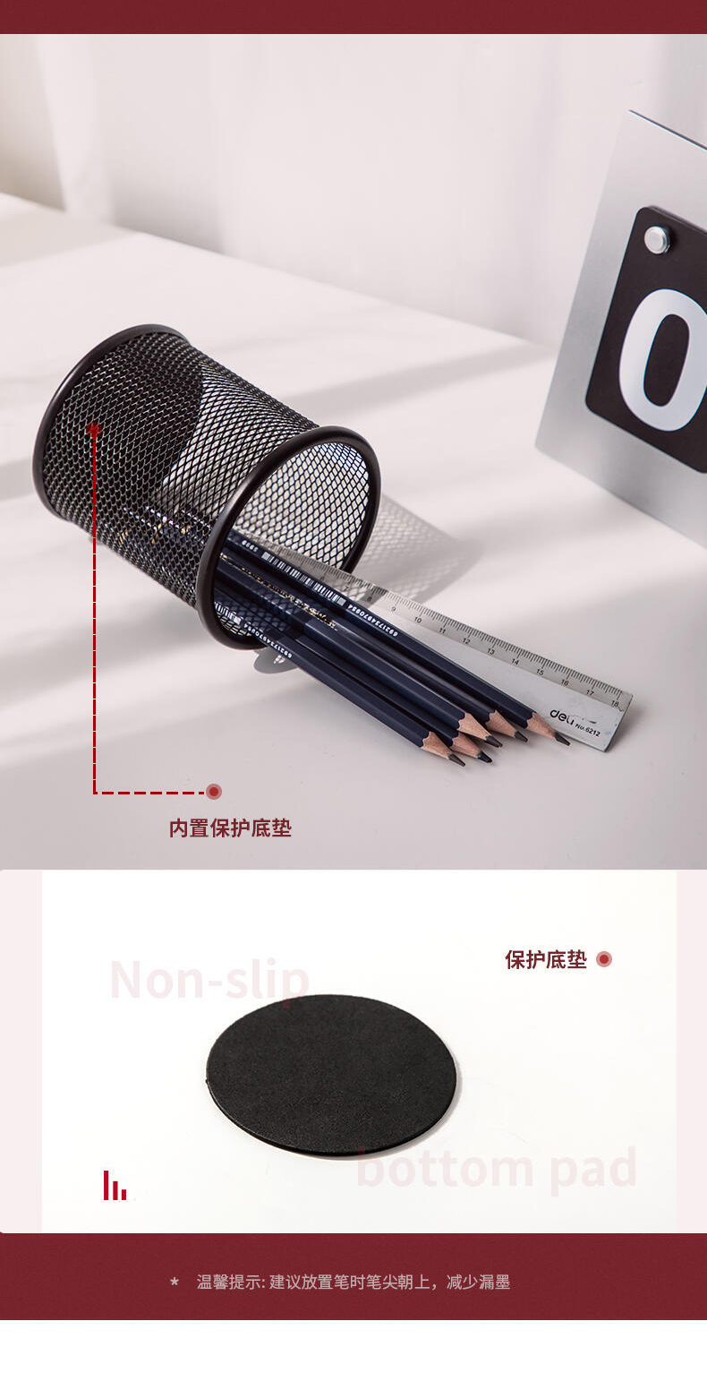 得力 Deli 9172 Металлическая сетчатая сетчатая держатель ручки с творческой модной круглой ручкой держатель металлической ручки