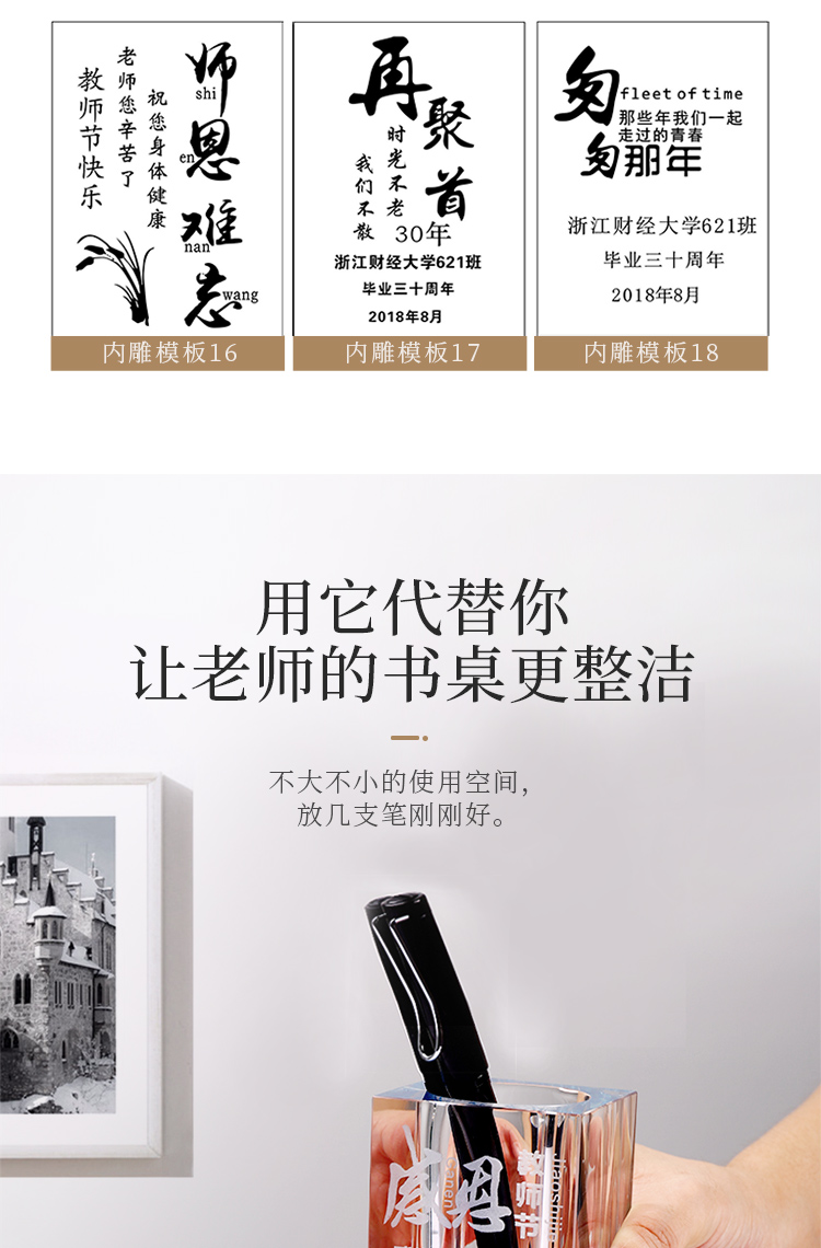 Обратите внимание на разницу:Этот держатель Crystal Pen готов к Дню учителя, и все личные индивидуальные тексты являются новыми.Лазерная технология резьбыПроизводство, текстовые шаблоны не упадут и не исчезают.