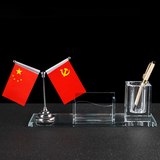 Crystal Pen Holder Custom Desktop Office Office High -End украшение Hongqi National Flag Business Kift Office Производитель