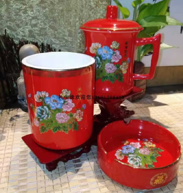 Комплект для офиса, керамический держатель для ручек, чайная чашка, пепельница, 3 предмета, подарок на день рождения, китайский стиль