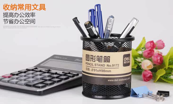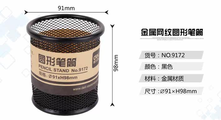 Deli Iron Mesh Multi -Function Pen Holder 9172 Metal Grid Circular Penerder