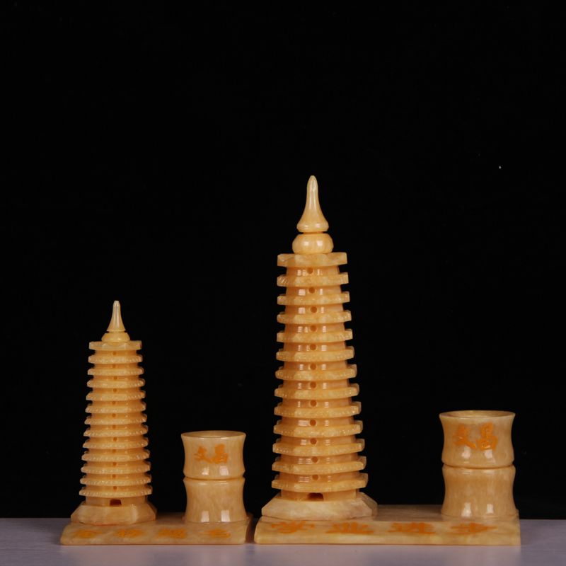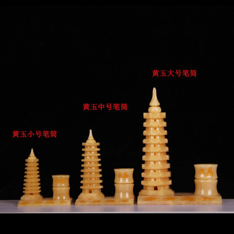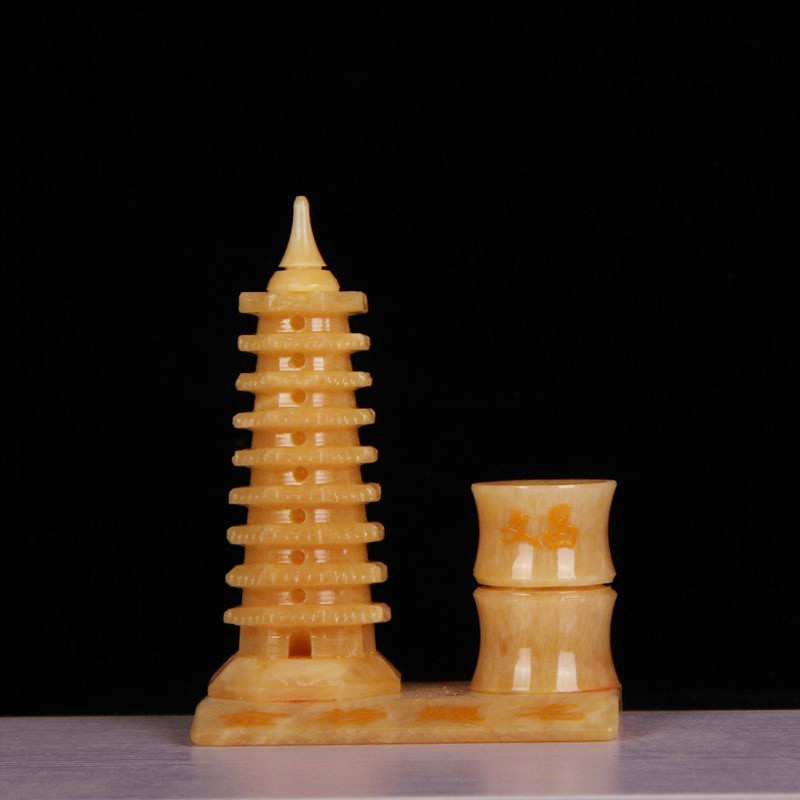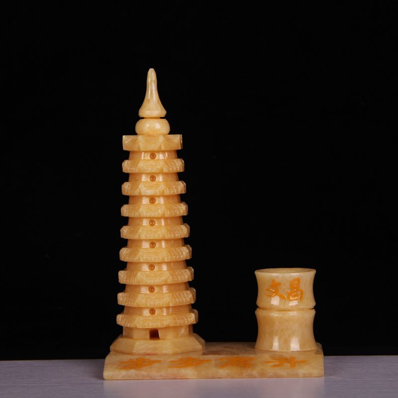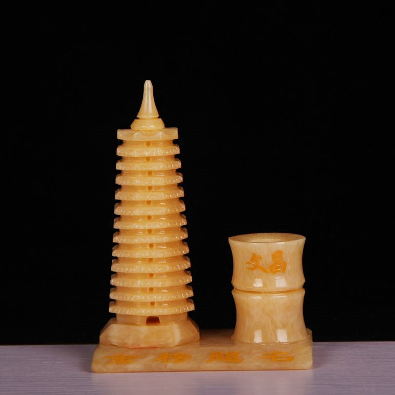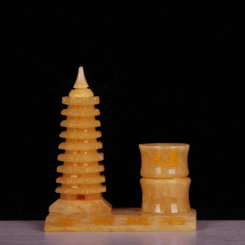 Натуральный желтый нефрит 9 -слой 13 -слой держатель пера Wenchang Tower Object Feng Shui Jade Carging Crafts Creative Swing
