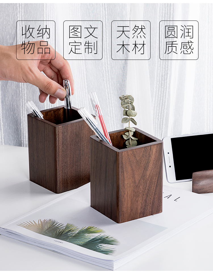 Деревянный держатель для ручек из натурального дерева для школьников, делается под заказ, с печатью вашего логотипа