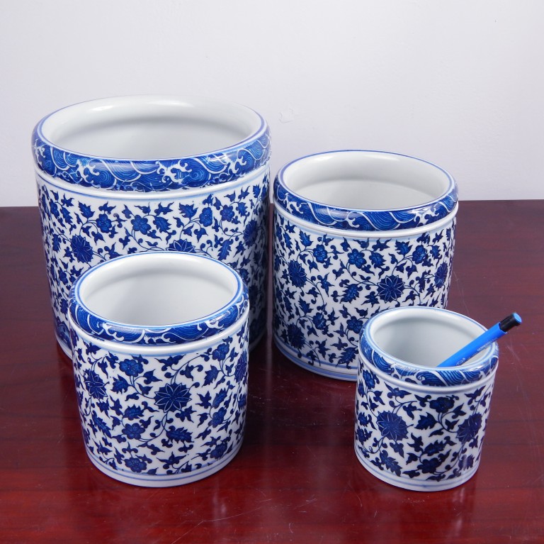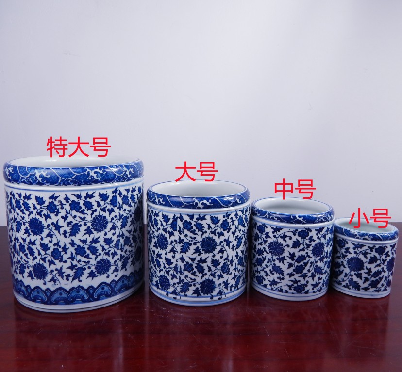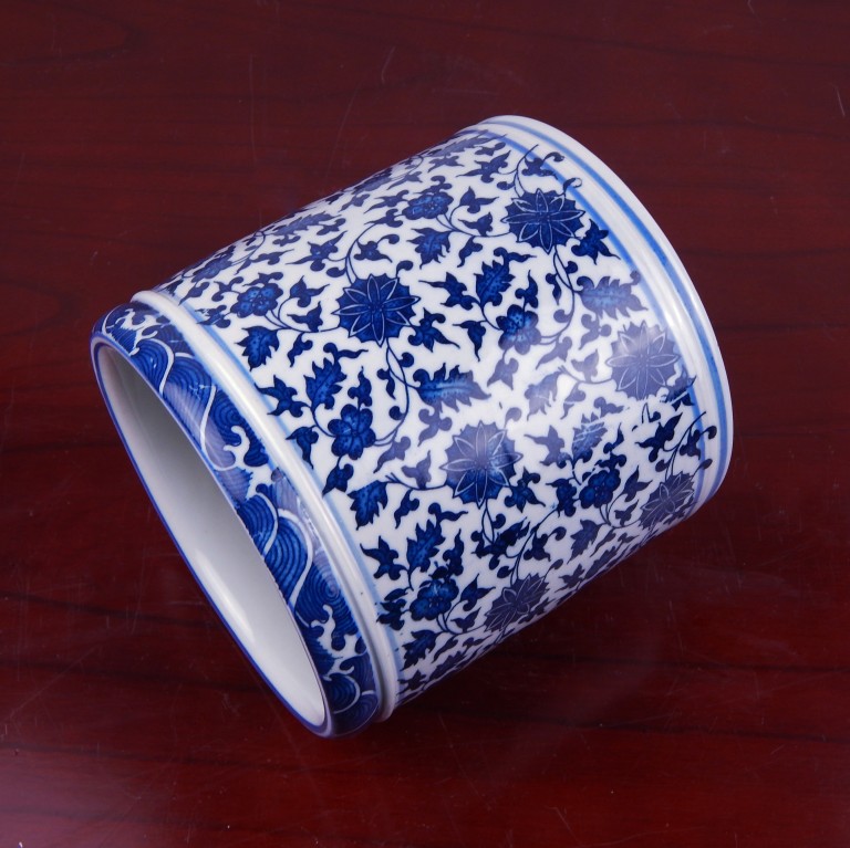 Полем Джингджэнь керамика Голубая и белая держатель пера замечательный лотос негабаритный держатель кисти четыре сокровища учебных комнат украшения