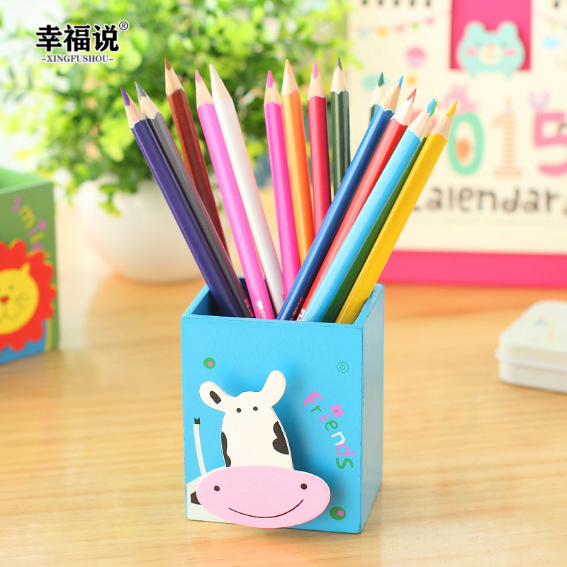 Настольная система хранения для школьников, модные мультяшные канцтовары, милый деревянный держатель для ручек, фотография, Южная Корея, оптовые продажи