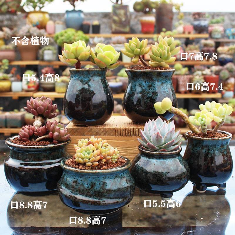 - Изумрудный зеленый синий большой палец в горшок 6, средний и керамический