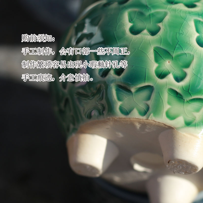 - 6 флуоресцентных зеленых черных горшков с большими пальцами 6, среда и керамика