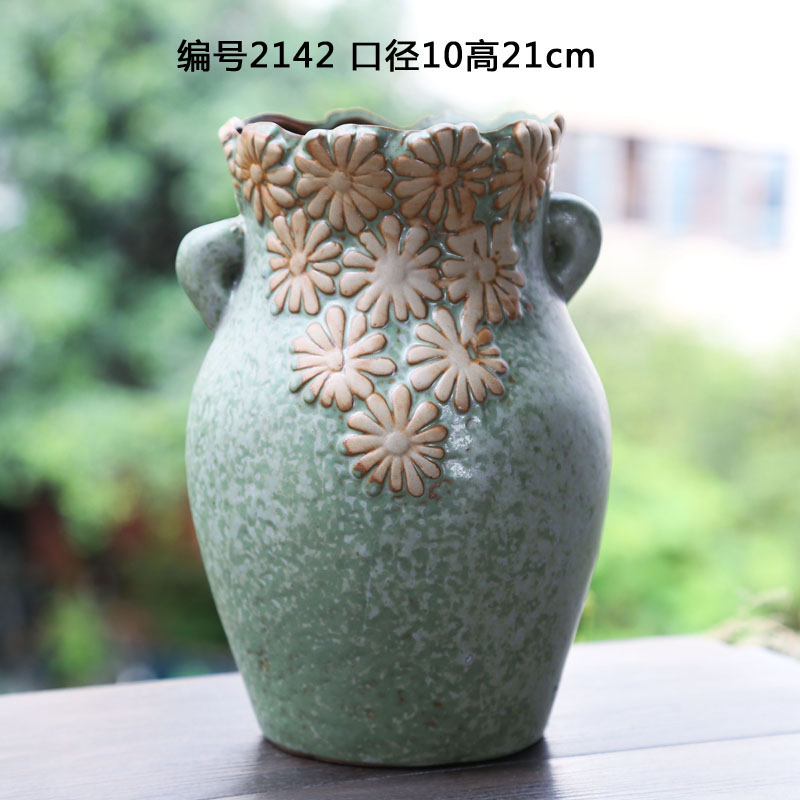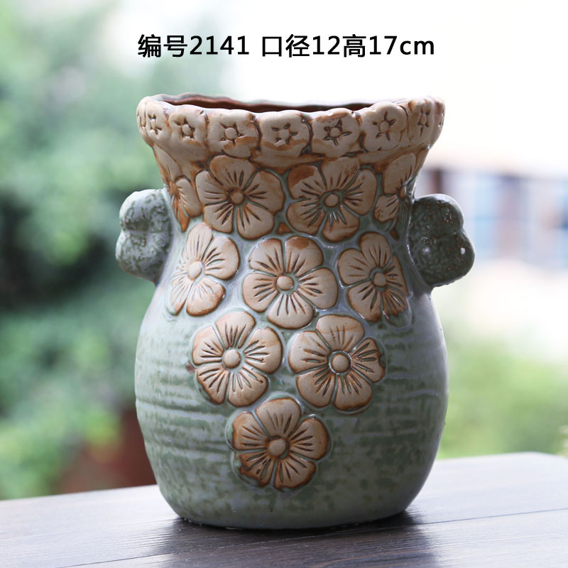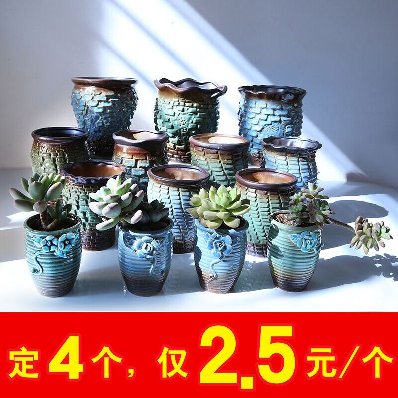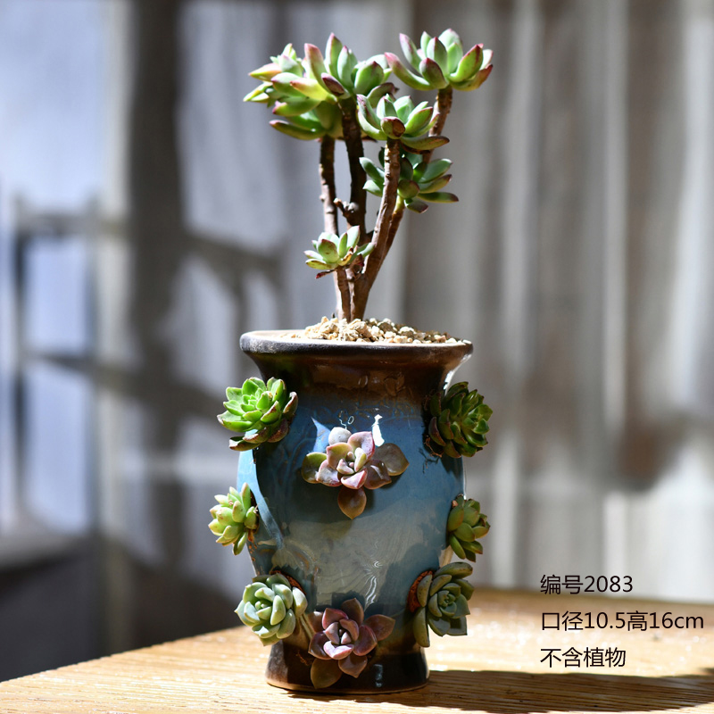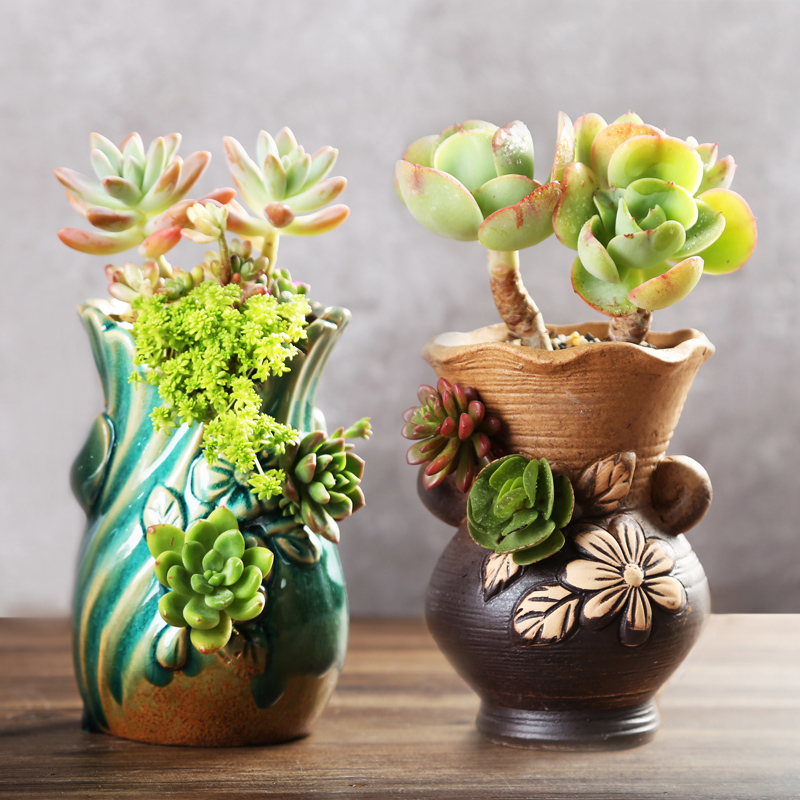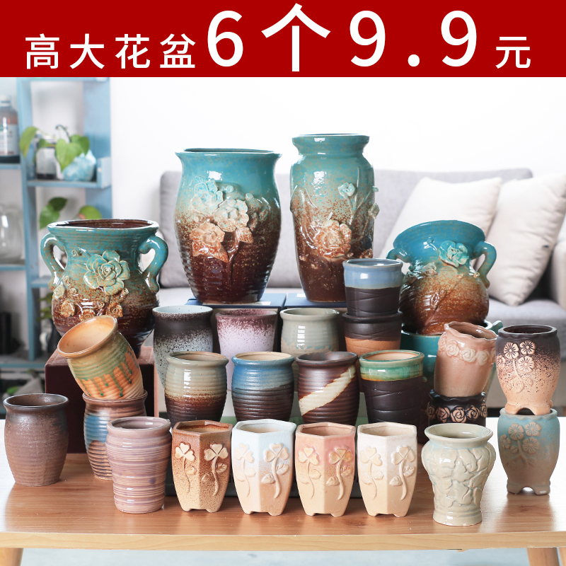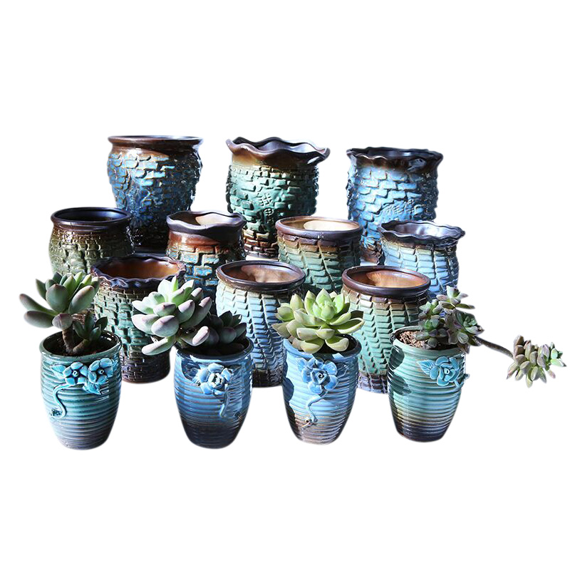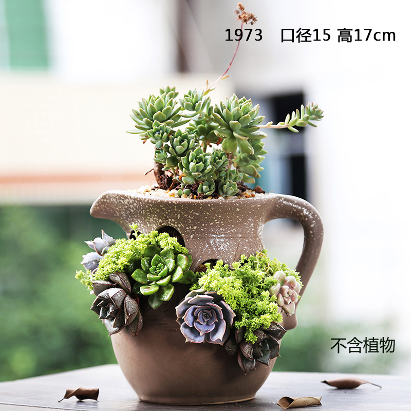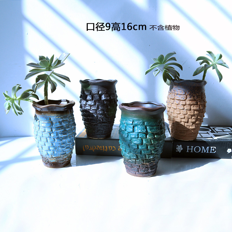 Керамическая грубая керамика Простая сочная растение ретро старая куча горшки самостоятельно, вода, высокая цветочная горшка, прозрачный склад