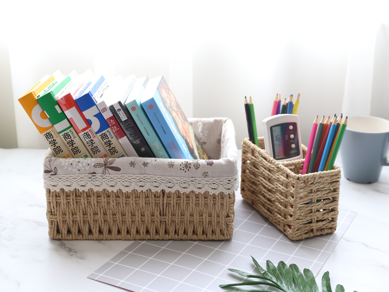 Соломенная корзина для хранения, ручка, японские перчатки, брендовая настольная система хранения, дистанционное управление