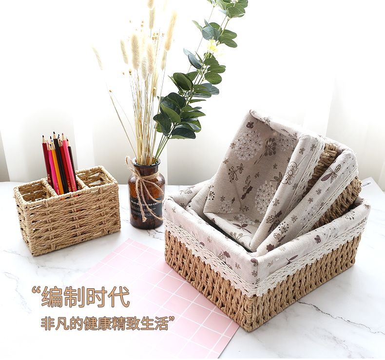 Соломенная корзина для хранения, японская ручка, настольная система хранения, дистанционное управление