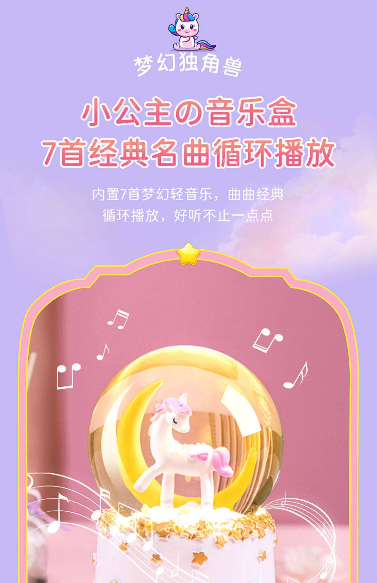 Крутящаяся музыкальная детская музыкальная шкатулка, единорог, подарок на день рождения