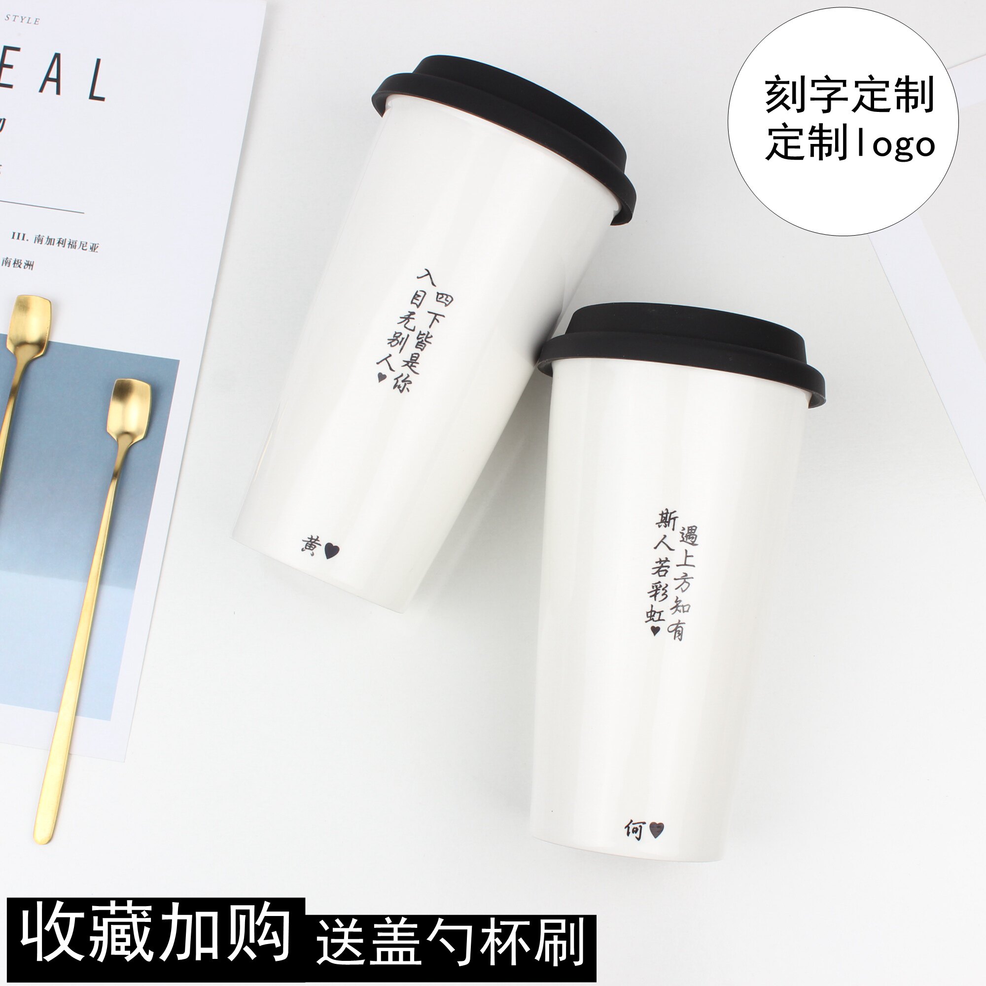 Пара чашки Ceramic Cup Men and Women Mug Creative Coffee Cup Cup Cup Cup Letterable Custom Logo с крышкой ложкой