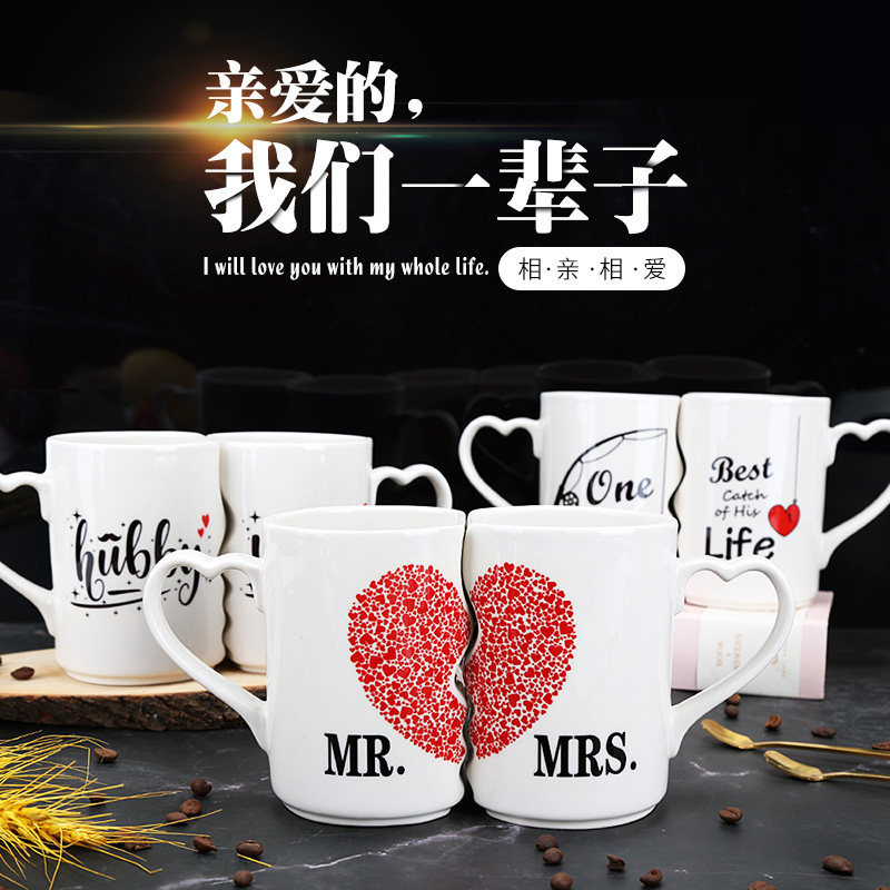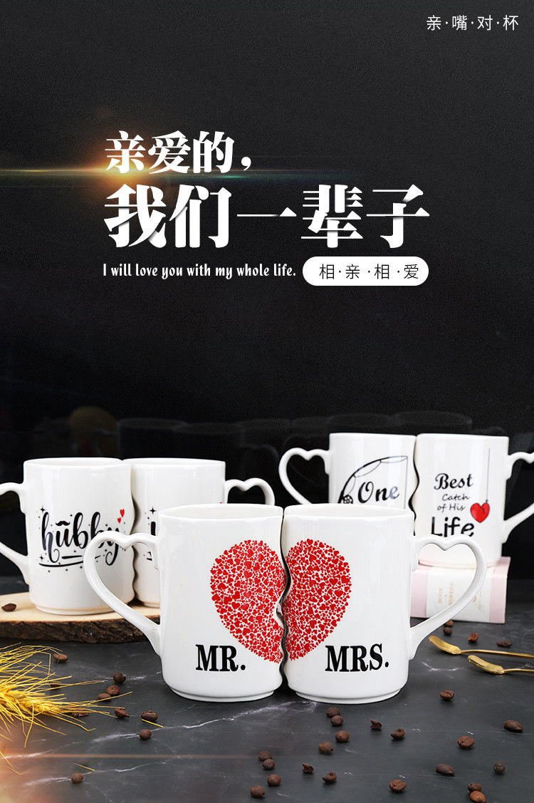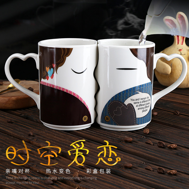 Поцелуй пара чашка кубка Qixi Day Day Dist Gifts Kis Kiss Mark Cup Color Color
