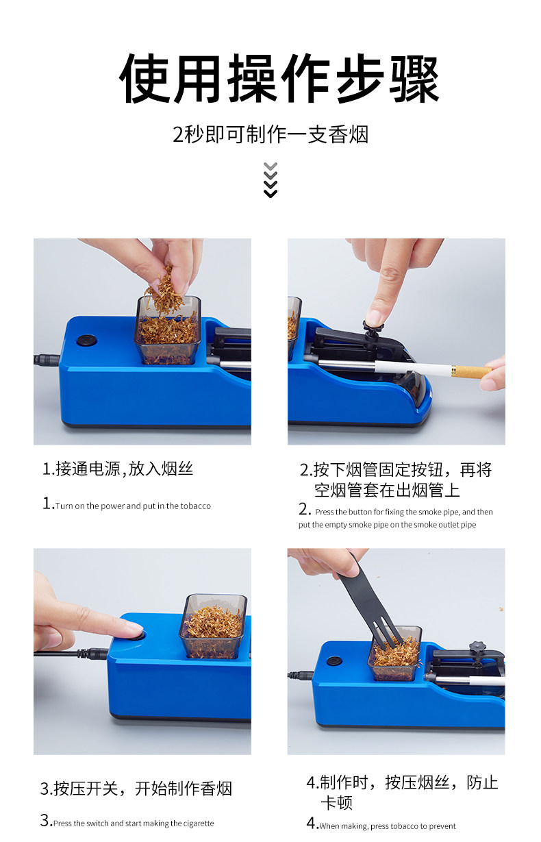 Полностью -аутоматическая толщина двойная домашняя электрическая USB -интерфейс портативная высокая сигаретная труба с сигарет 8,0/6,5 Прилив