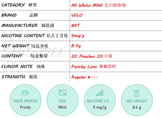 Шведский ртушка с сигаретой сигарет -сигарет Velo Pullo Lime Mini все белые