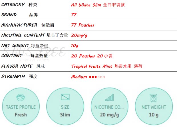 Швеция мешочки 77 тропический мята Слим все белые тропические фрукты мята