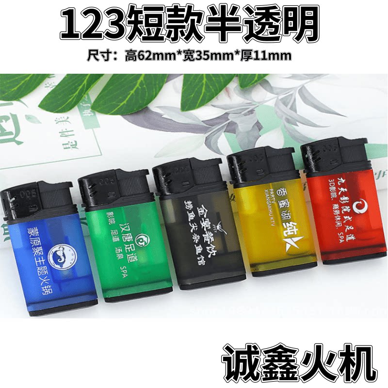 Короткая зажигалка, прозрачный ластик, делается под заказ, с печатью вашего логотипа