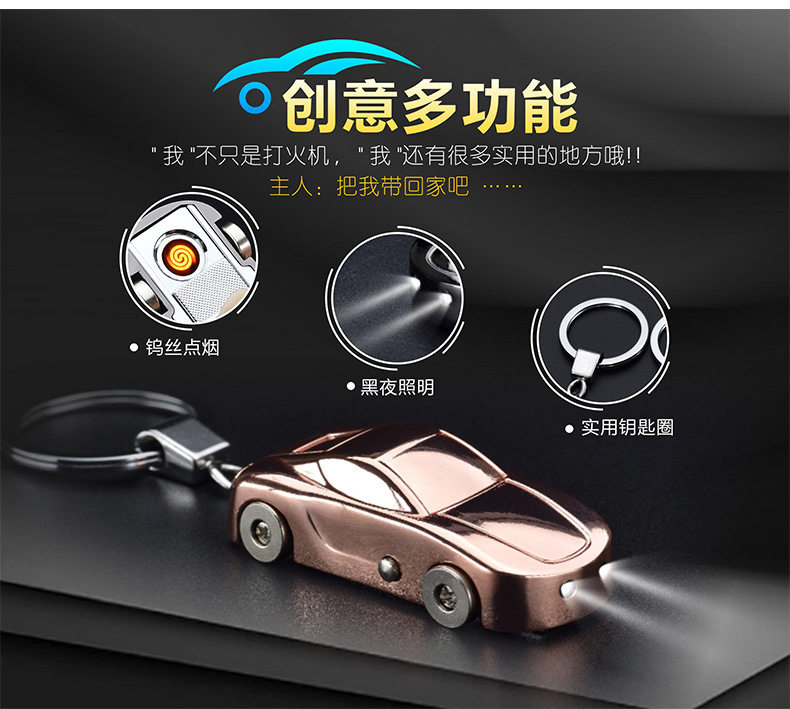 Модель автомобиля для ключей, креативная зажигалка с зарядкой, ветрозащитная электронная маленькая подвеска подходит для мужчин и женщин, делается под заказ