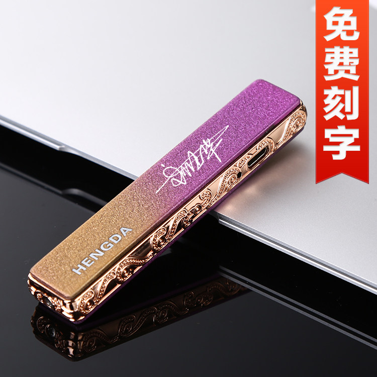 Креативная ультратонкая ветрозащитная зажигалка с зарядкой, делается под заказ, подарок на день рождения, DIY