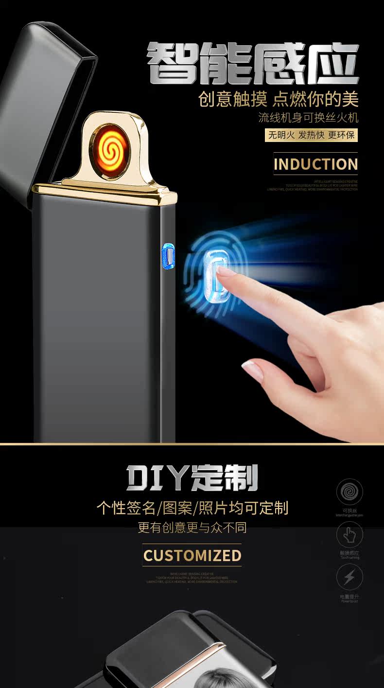 Ветрозащитная ультратонкая креативная электронная зажигалка с зарядкой, подарок на день рождения, DIY, делается под заказ