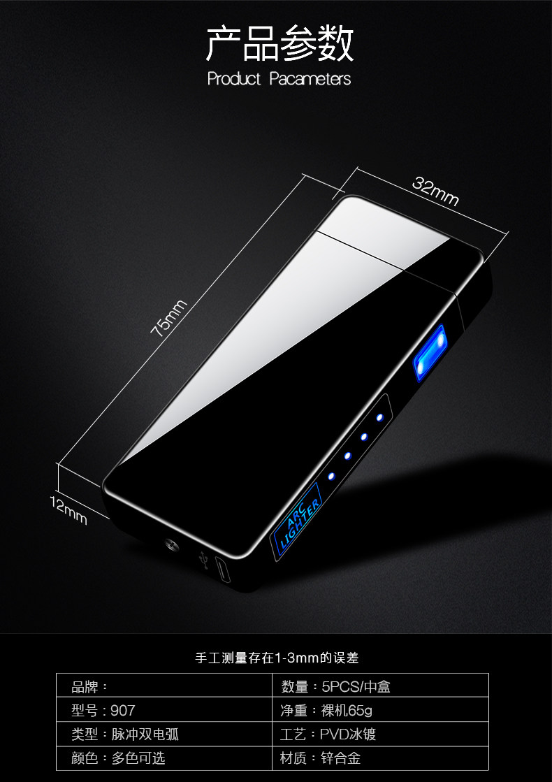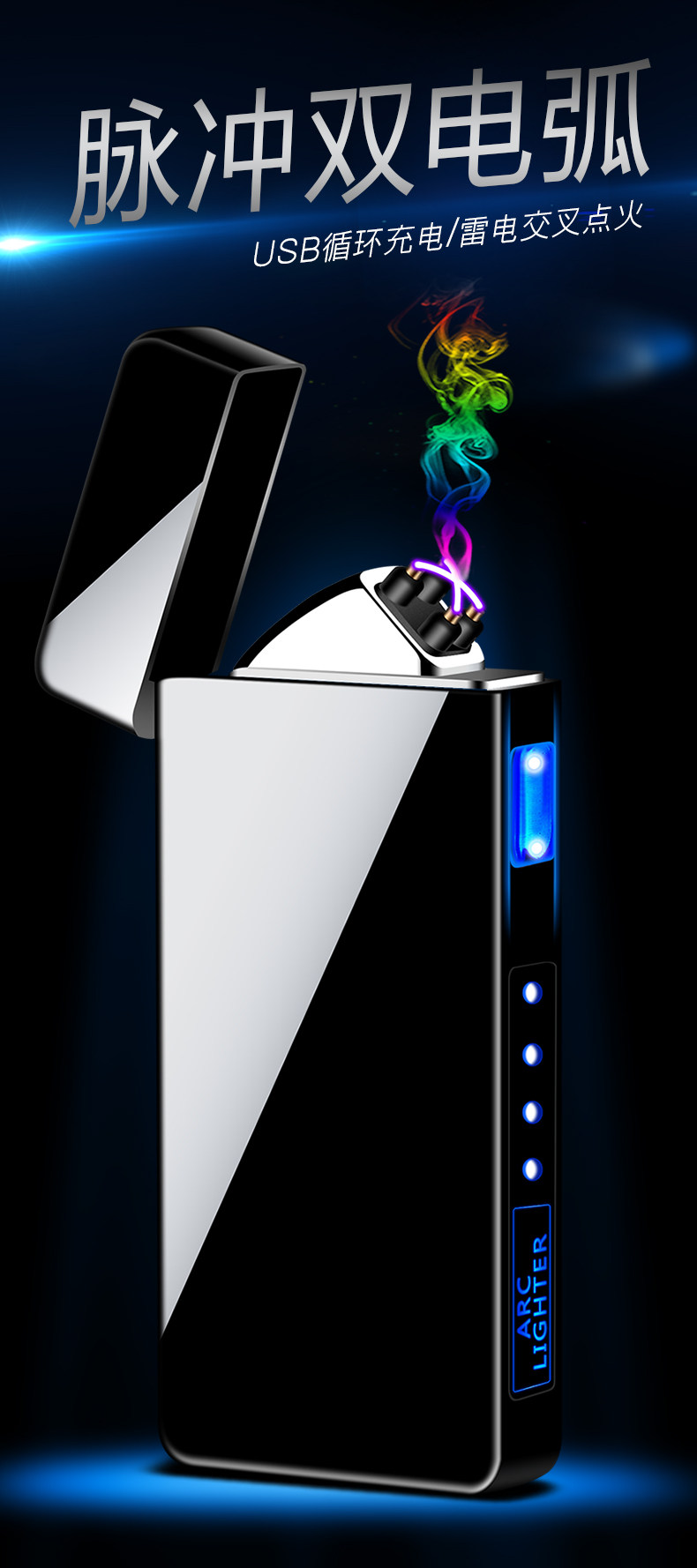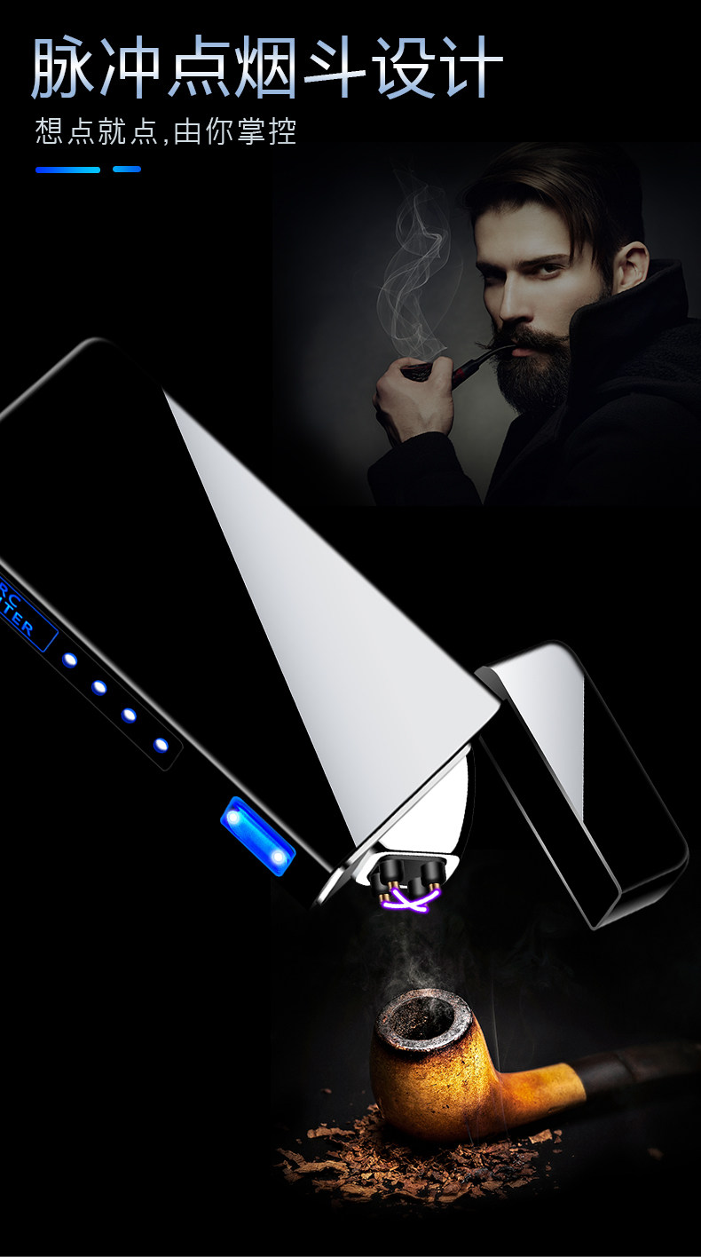 Двухдуговая ветрозащитная креативная мужская электронная маленькая зажигалка с зарядкой