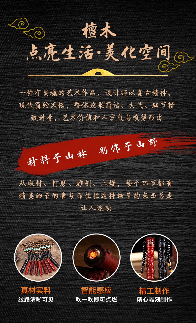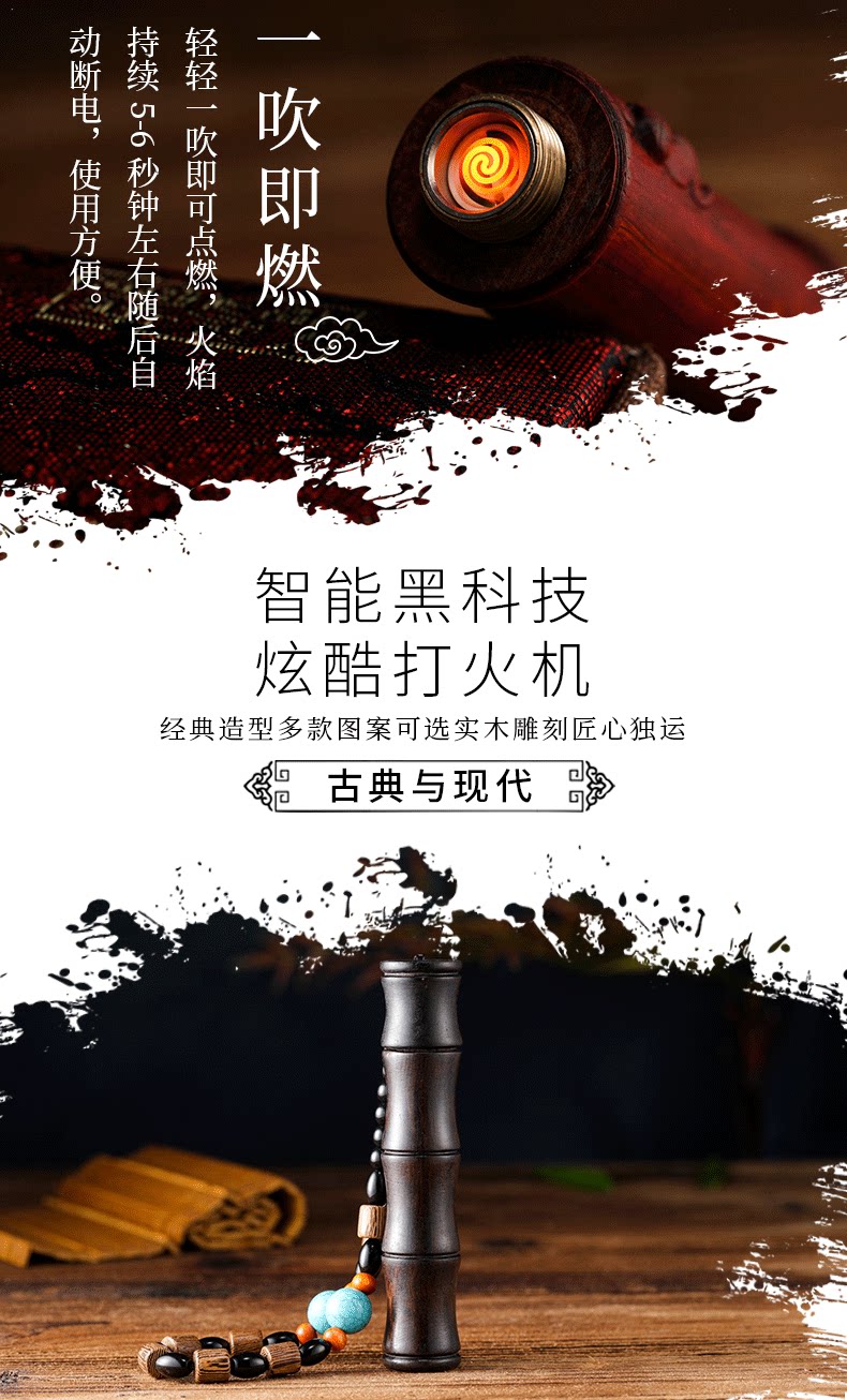 Двухдуговая ветрозащитная старомодная креативная зажигалка из сандалового дерева с зарядкой