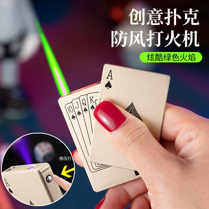 Игральные карты, защитная ветрозащитная надувная креативная высококлассная зажигалка, популярно в интернете