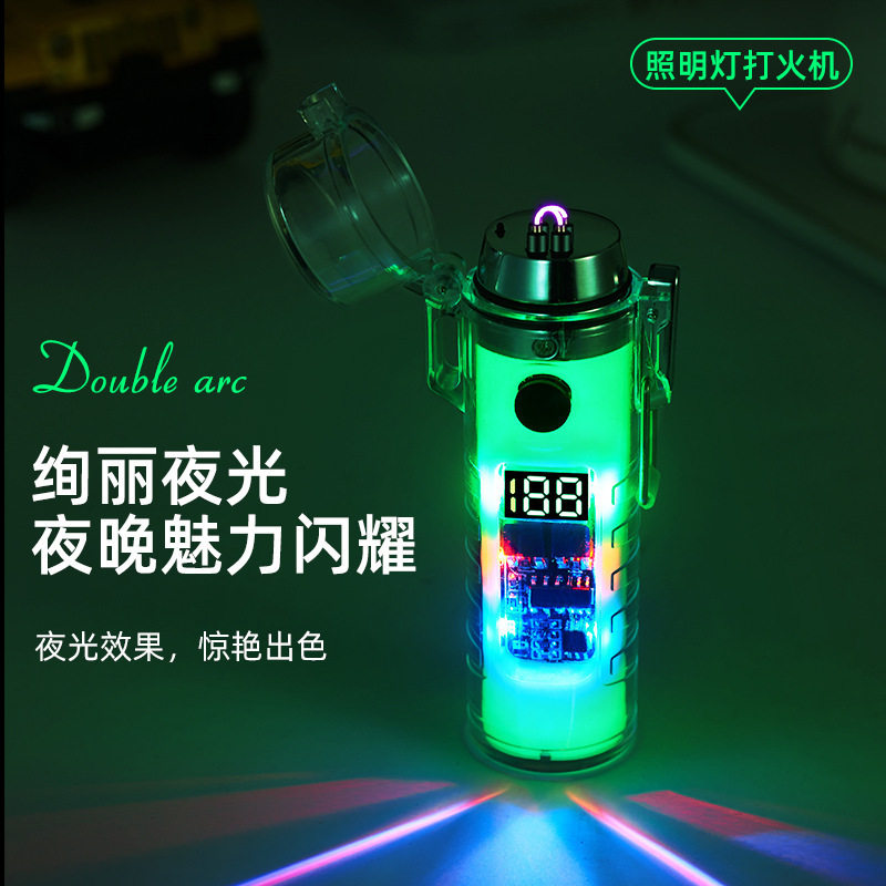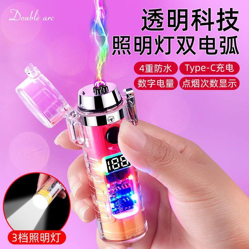 Двухдуговая защитная ветрозащитная дорожная зажигалка, круглый водонепроницаемый фонарь с зарядкой подходит для мужчин и женщин, градиент, наука и технология, подарок на день рождения