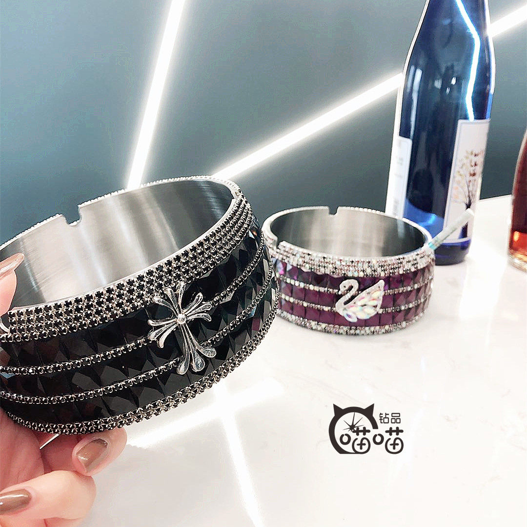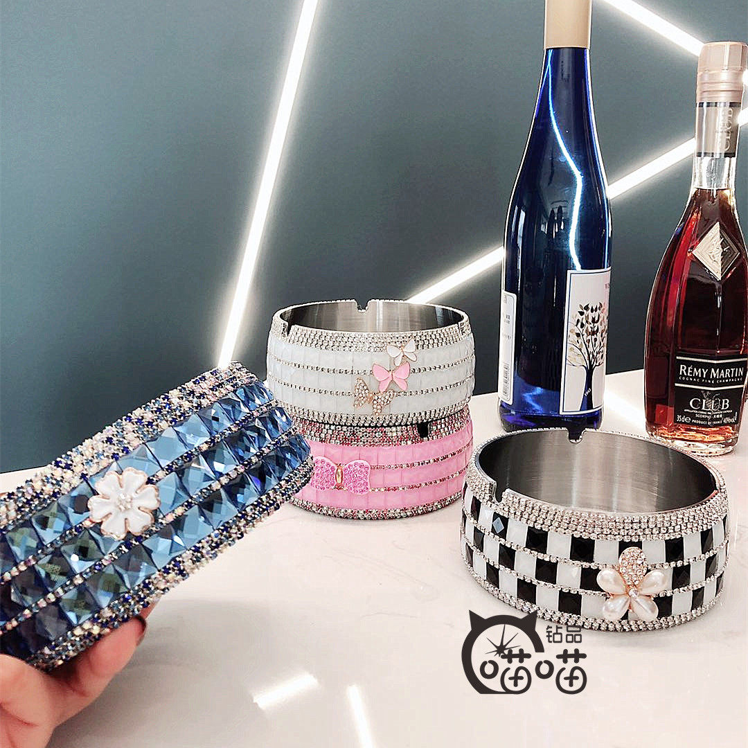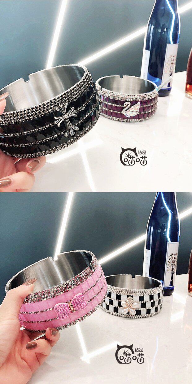 Креативная большая оригинальная дизайнерская пепельница из нержавеющей стали, инкрустировано бриллиантами, в цветочек, подарок на день рождения, 12см, делается под заказ