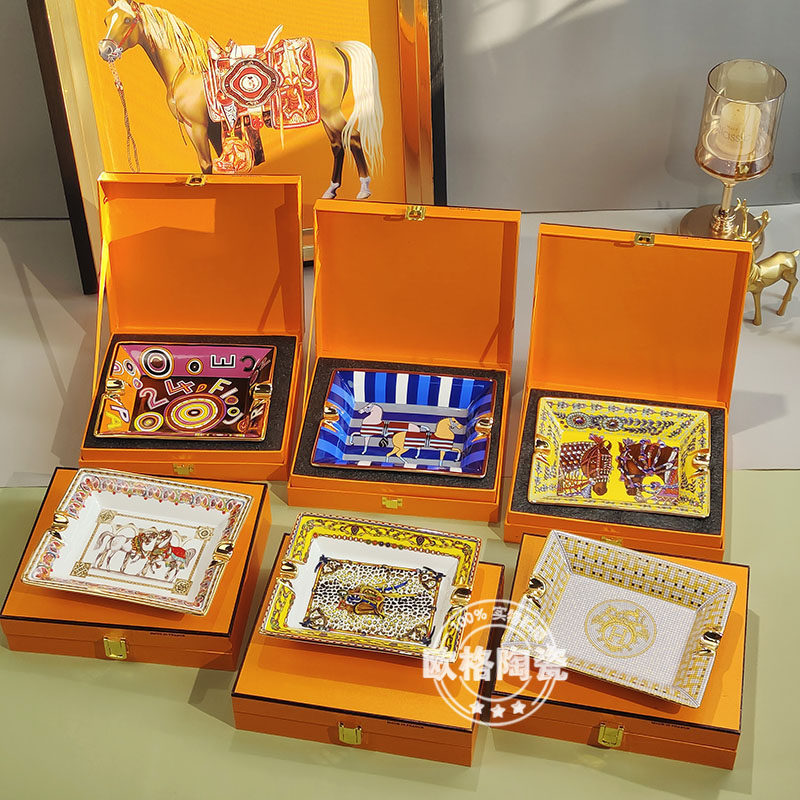 Пепельница, большой декор для гостиной, кожаный замок, подарочная коробка, европейский стиль, домашний декор
