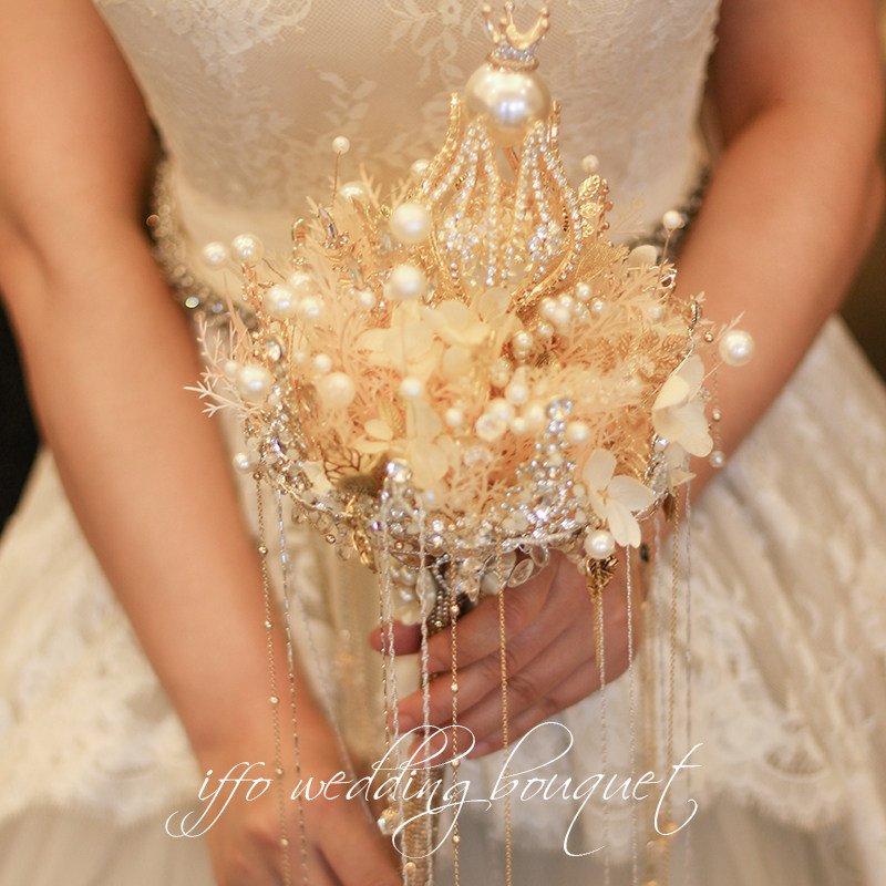 Pufo Iffo ручная невеста Букет букет барокко драгоценный камень хрустальный букет корона Королева Королева Свадебная настройка свадебная свадьба