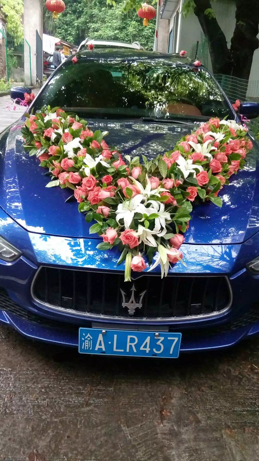 Чунцинг профессиональный цветочный автомобиль Порошок розовой лента лилия 囍 Основная городская зона на обслуживании