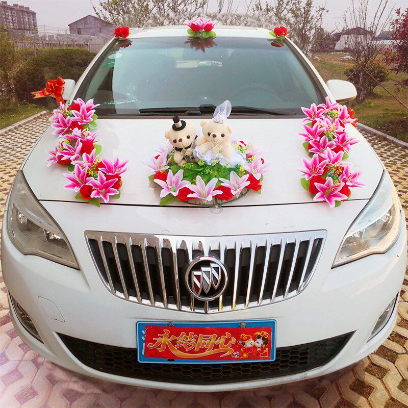Главный свадебный автомобиль украшает передние свадебные припасы выставки автомобиль, невеста, набор, галстук Цветочный автомобиль Устройство всасывания китайского стиля