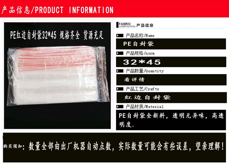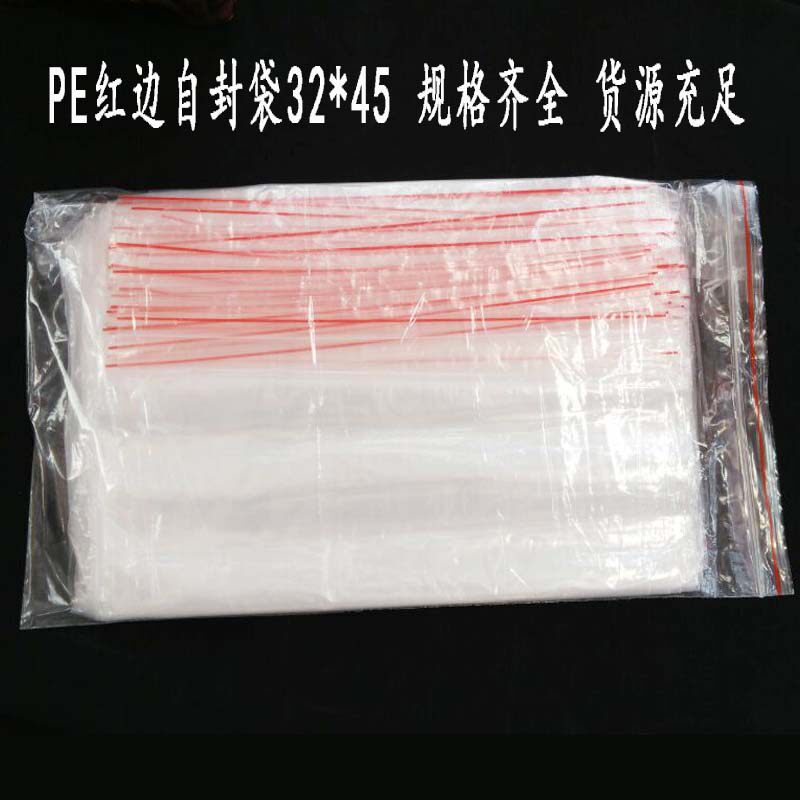 Пластиковый пакет с красным краем Self -Sealed Пластительный пакет толстый и прозрачный тип 100 Цена 32*45 см.