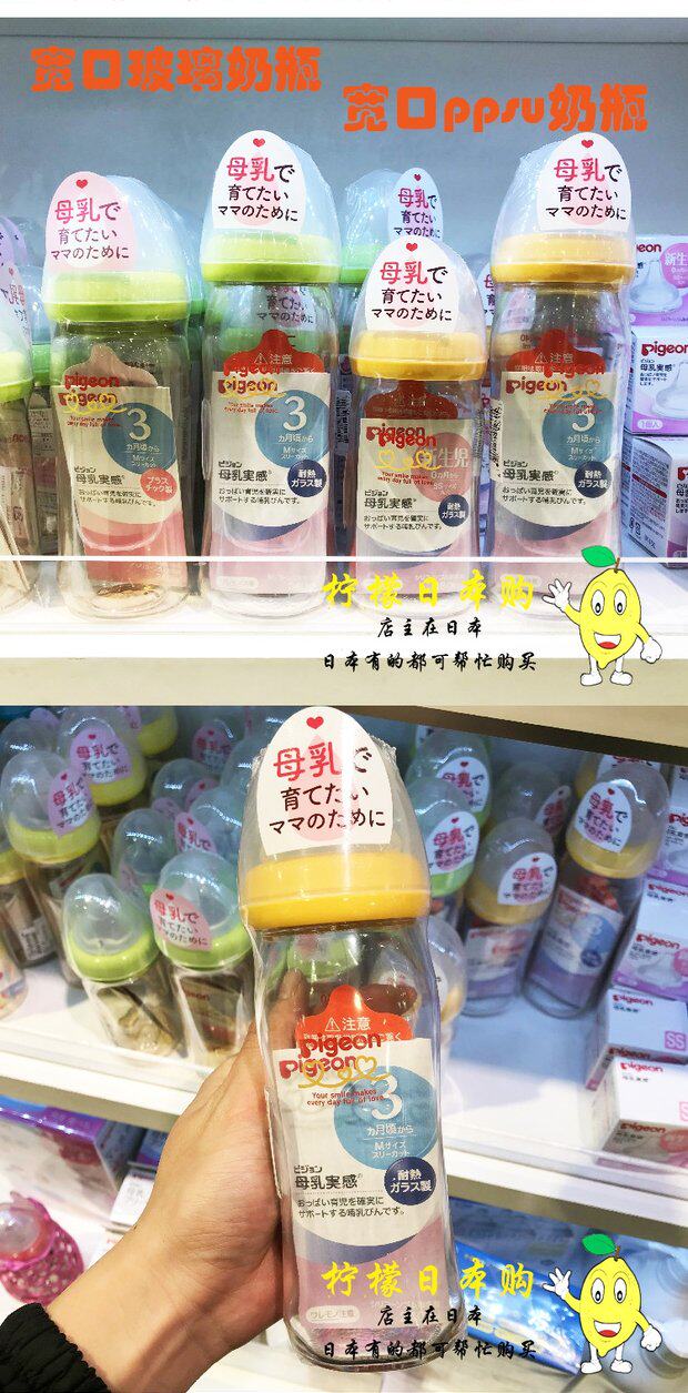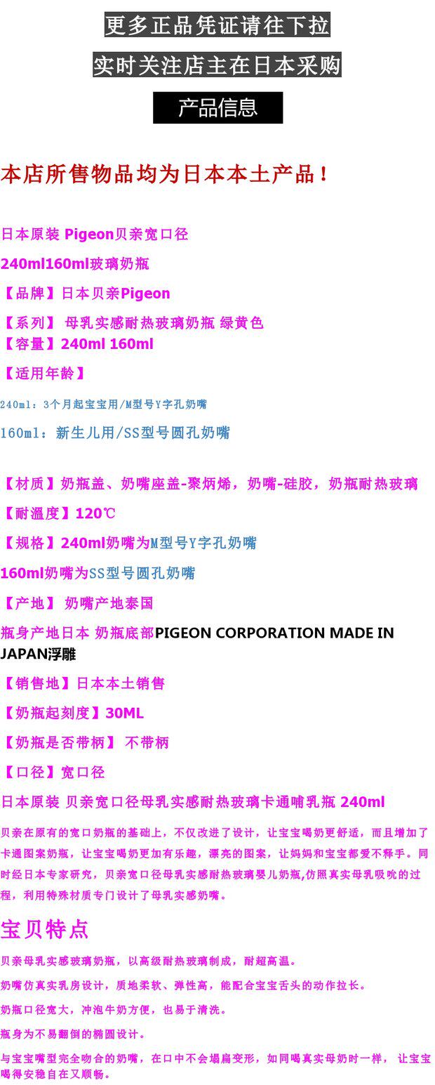 Pigeon, японская стеклянная бутылочка для кормления, широкое горлышко, 160 мл, 240 мл