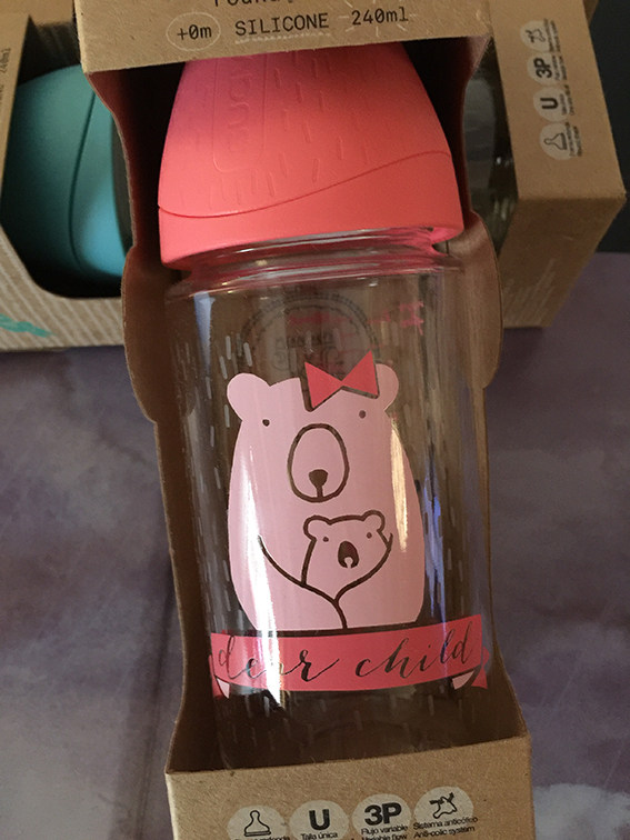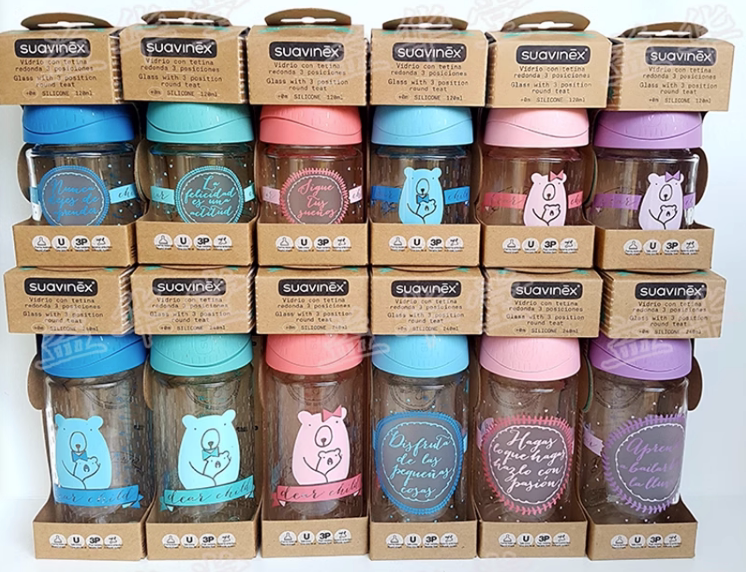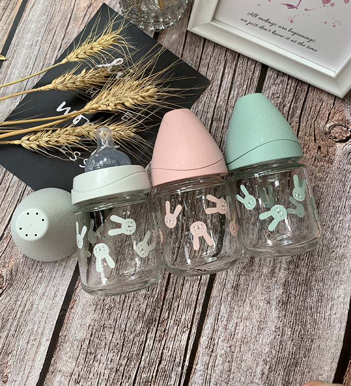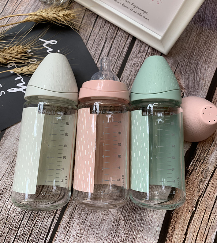 Стеклянная антиколиковая силиконовая бутылочка для кормления, (в наличии на складе), Испания, широкое горлышко, 120 мл, 240 мл