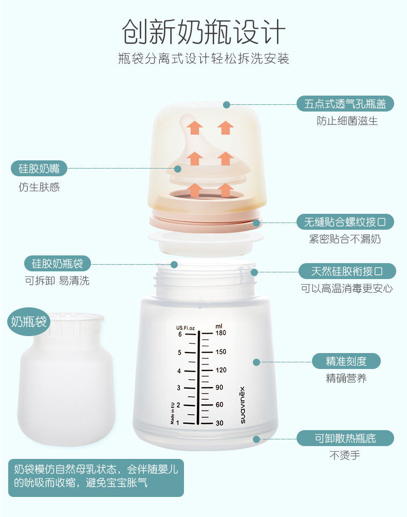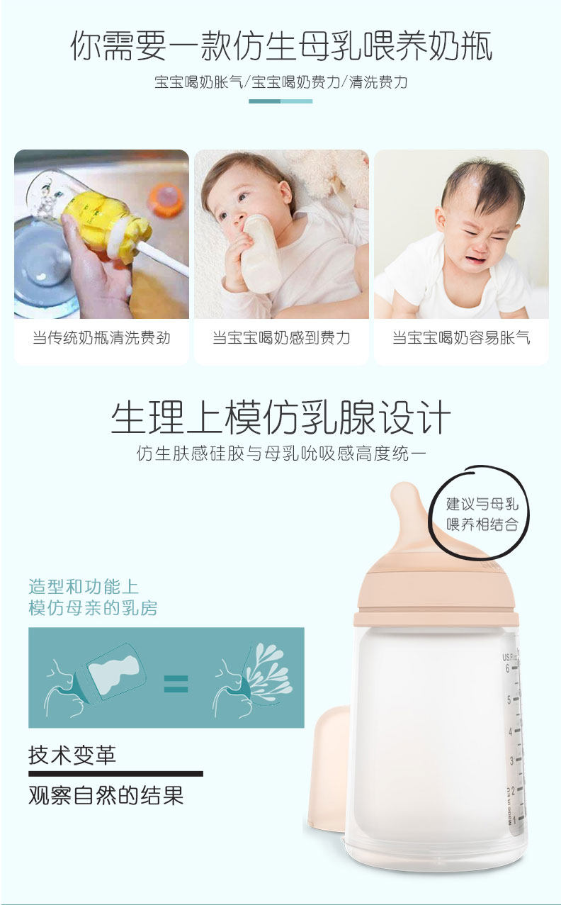 Антиколиковая силиконовая бутылочка для кормления, (в наличии на складе), Испания, защита при падении