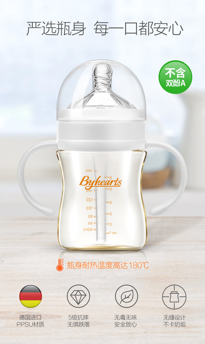 百爱生 Детская антиколиковая ударопрочная бутылочка для кормления, широкое горлышко, 6-18 мес.