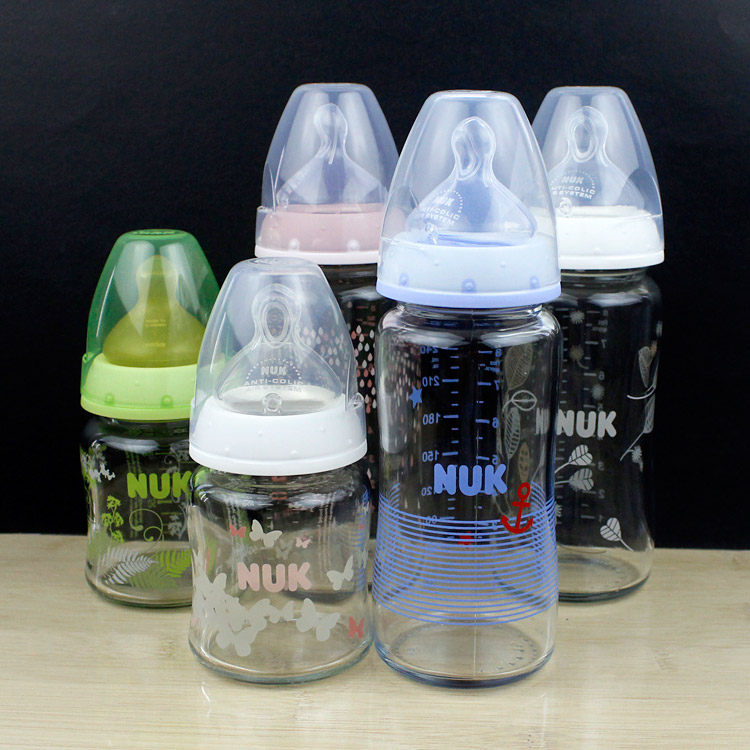 Стеклянная антиколиковая бутылочка для кормления, детская силиконовая соска, широкое горлышко, 120 мл