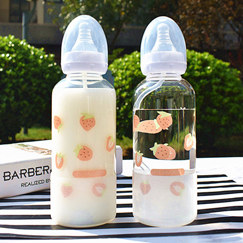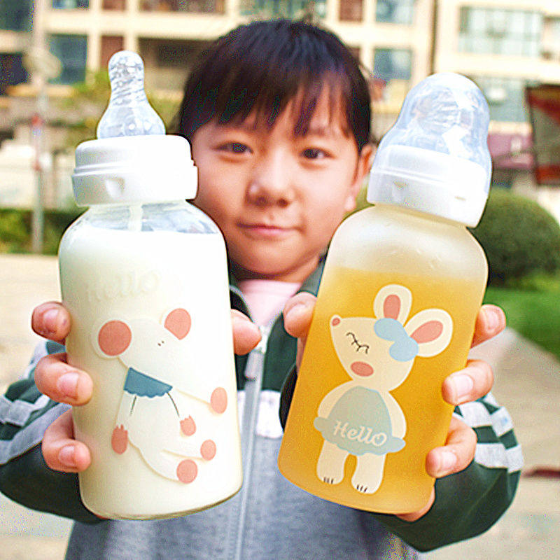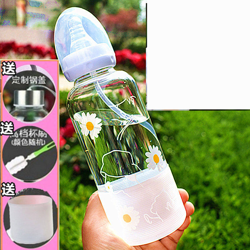 Милая стеклянная бутылочка для кормления для школьников со стаканом для друга, подходит для студента, популярно в интернете