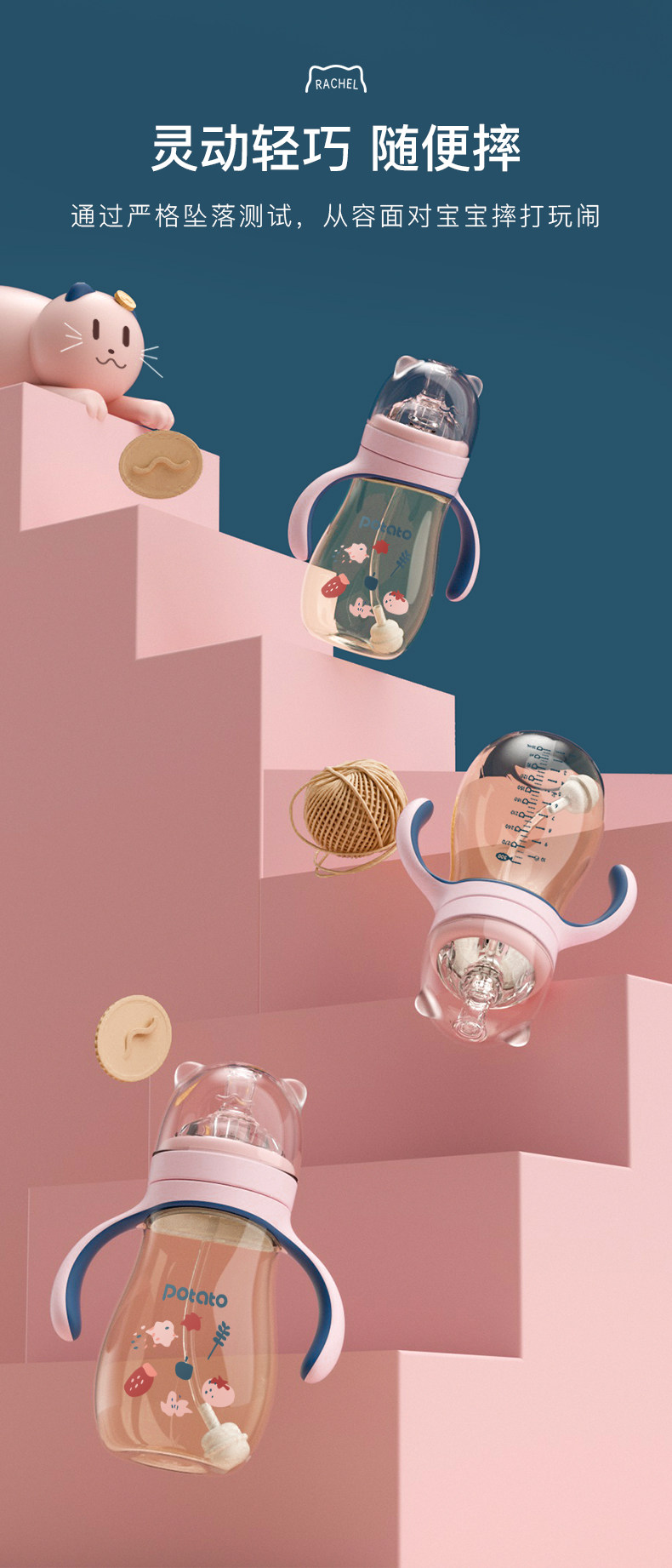 Ударопрочная бутылочка для кормления, стакан, детская чайная чашка, трубочка для кормящих грудью, 1 лет, 2 лет