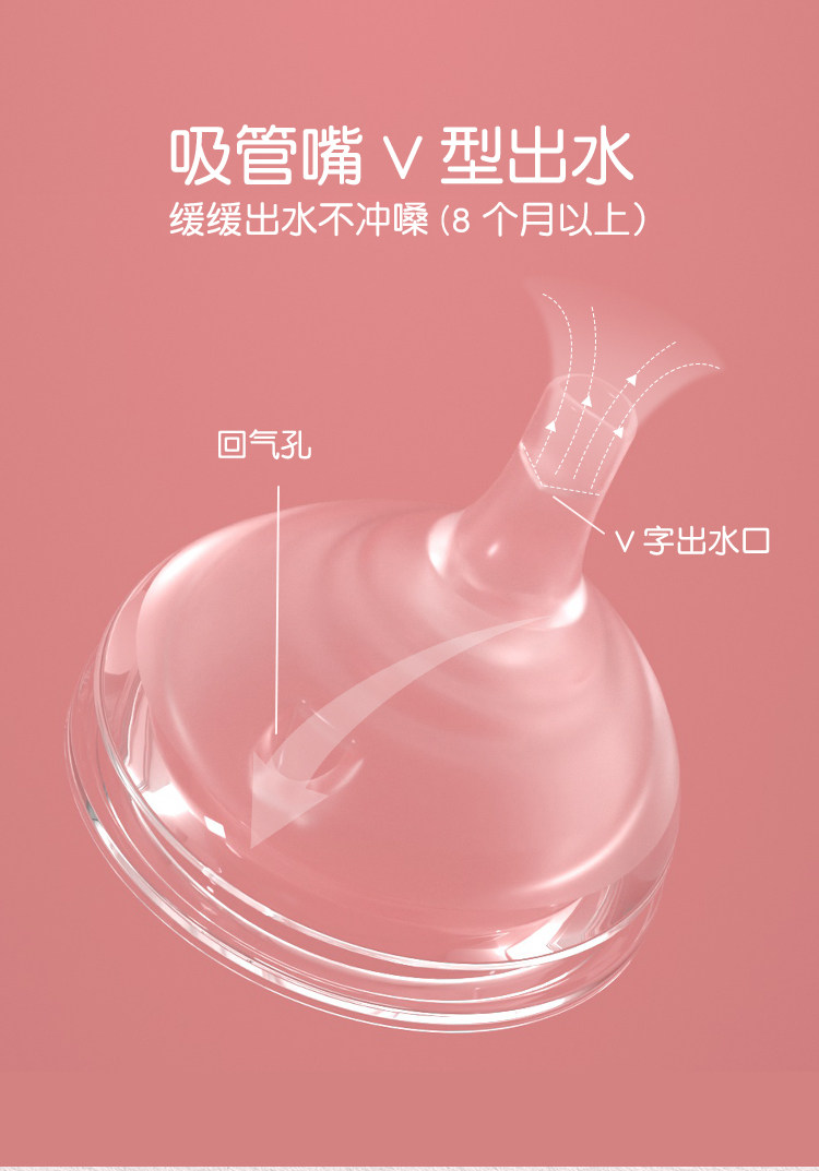 - Розовый стакан, соска, 240 мл, 6 мес.