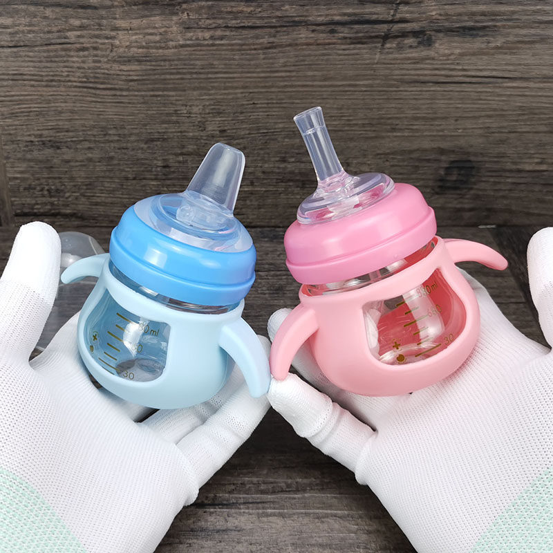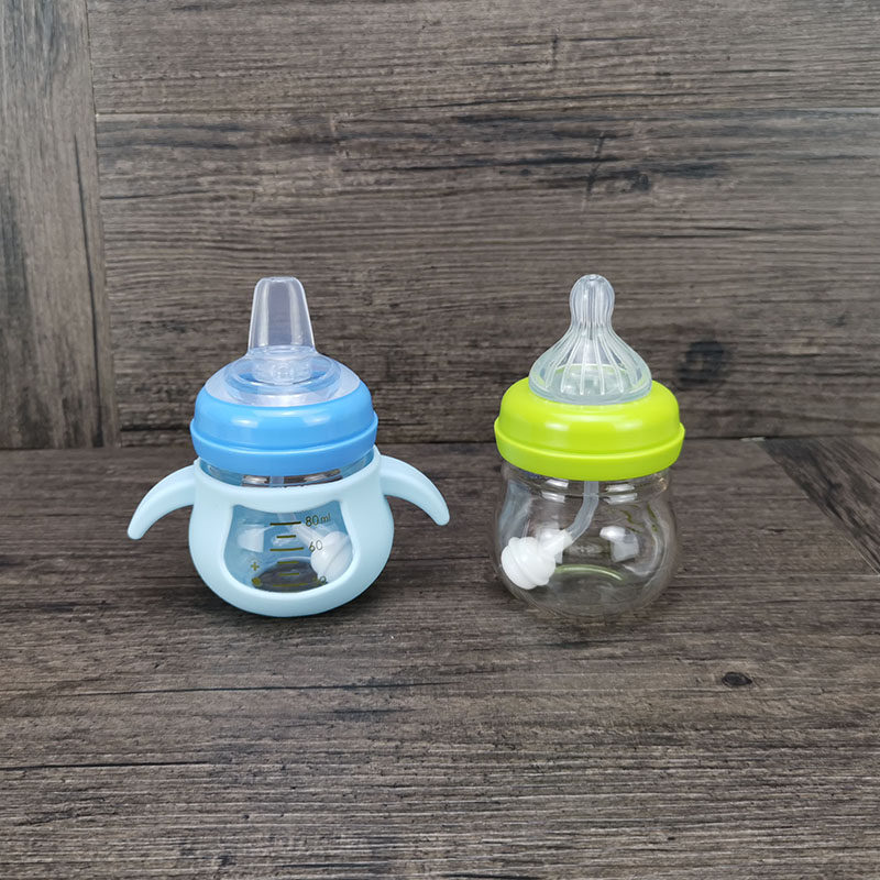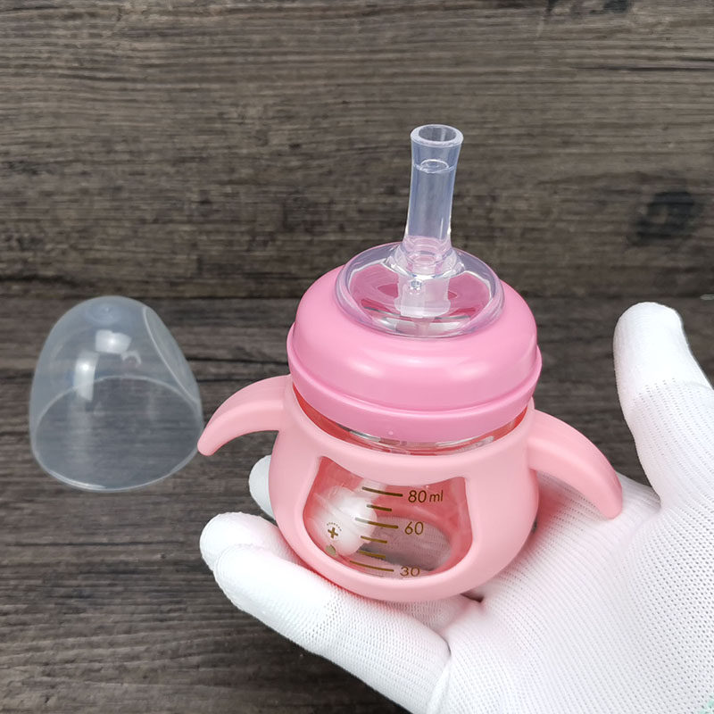 Детский маленький стакан, стеклянная силиконовая детская ручка со стаканом, 80 мл, широкое горлышко