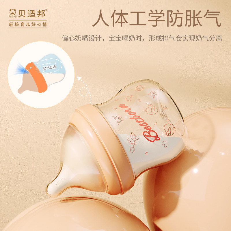 Стеклянная антиколиковая защитная бутылочка для кормления для новорожденных для младенца, комплект, 6 мес.
