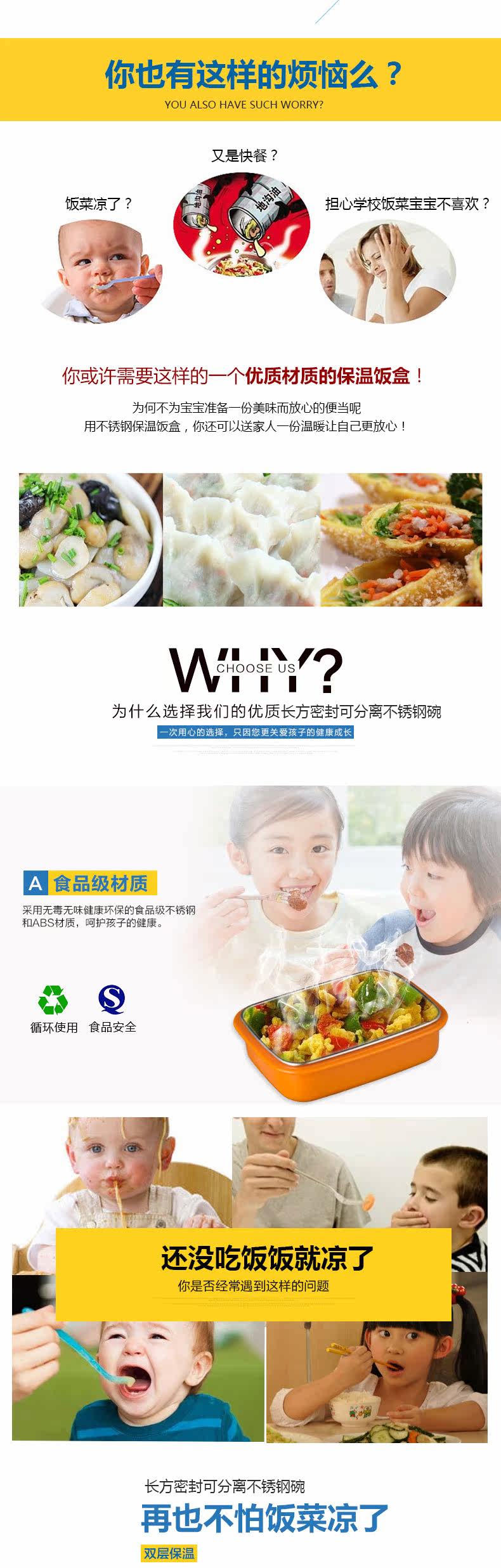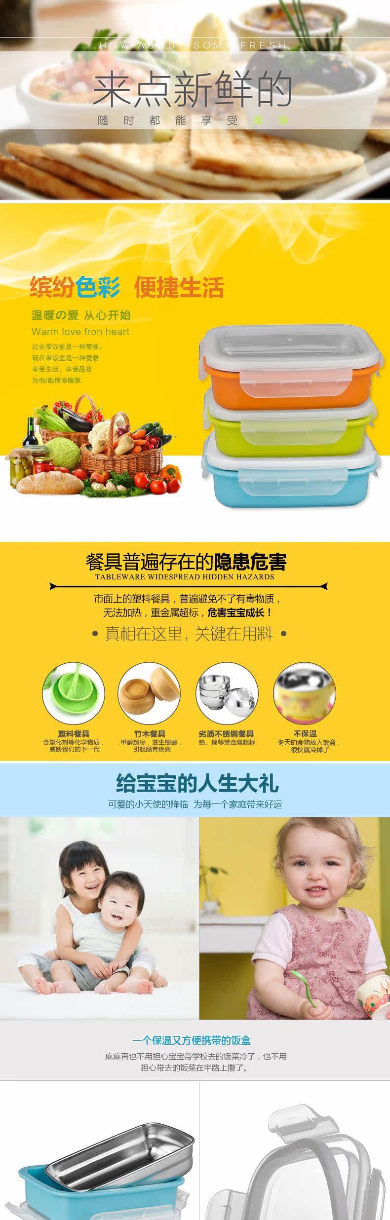 Детская квадратная посуда для кормления из нержавеющей стали, съемный ударопрочный ланч-бокс