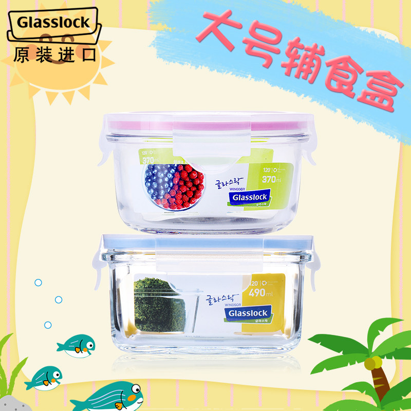 Стеклянная импортная детская большая стеклянная дополнительная пищевая коробка мини -свежево -хранение коробки для пары рисовая чаша замороженная коробка 2 кусочки набор